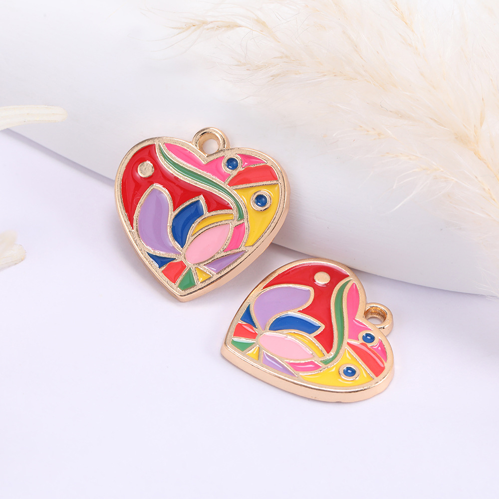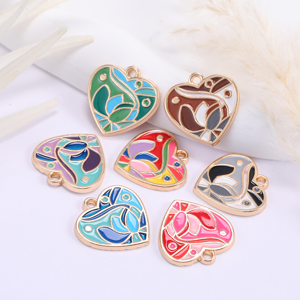 Colgantes de esmalte de la aleación del cinc, aleación de zinc, Corazón, chapado en color dorado, Bricolaje, más colores para la opción, 24x25mm, 10PCs/Bolsa, Vendido por Bolsa