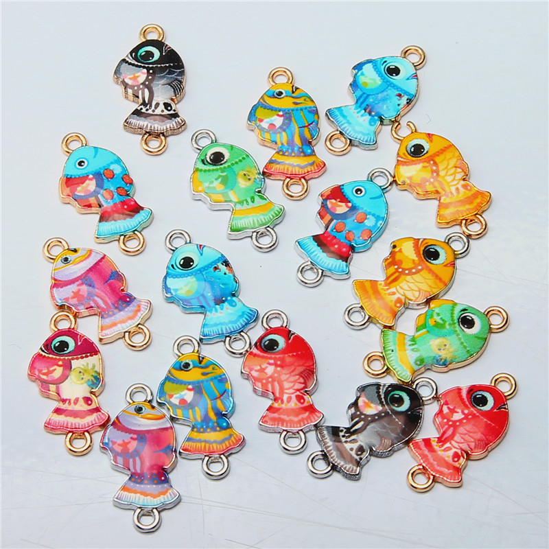 Colgantes de esmalte de la aleación del cinc, aleación de zinc, Pez, chapado, Bricolaje & diferentes patrones para la opción, más colores para la opción, 21.6x10x2mm, 100PCs/Bolsa, Vendido por Bolsa
