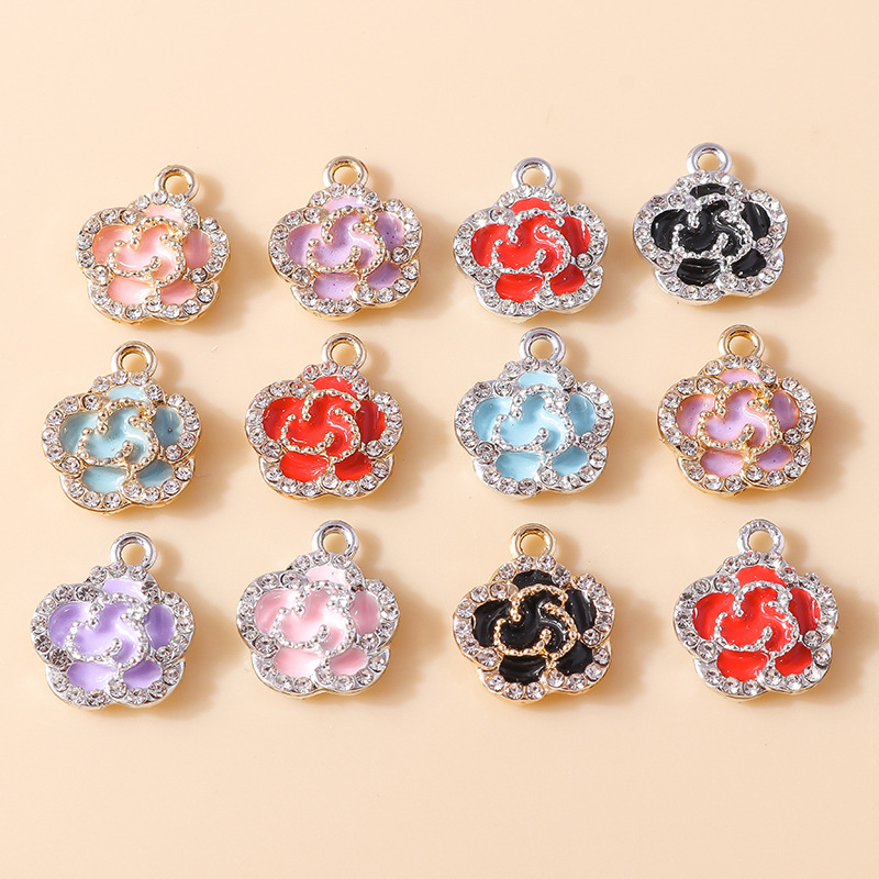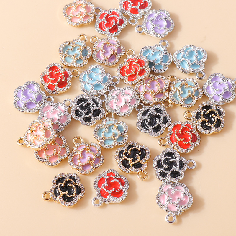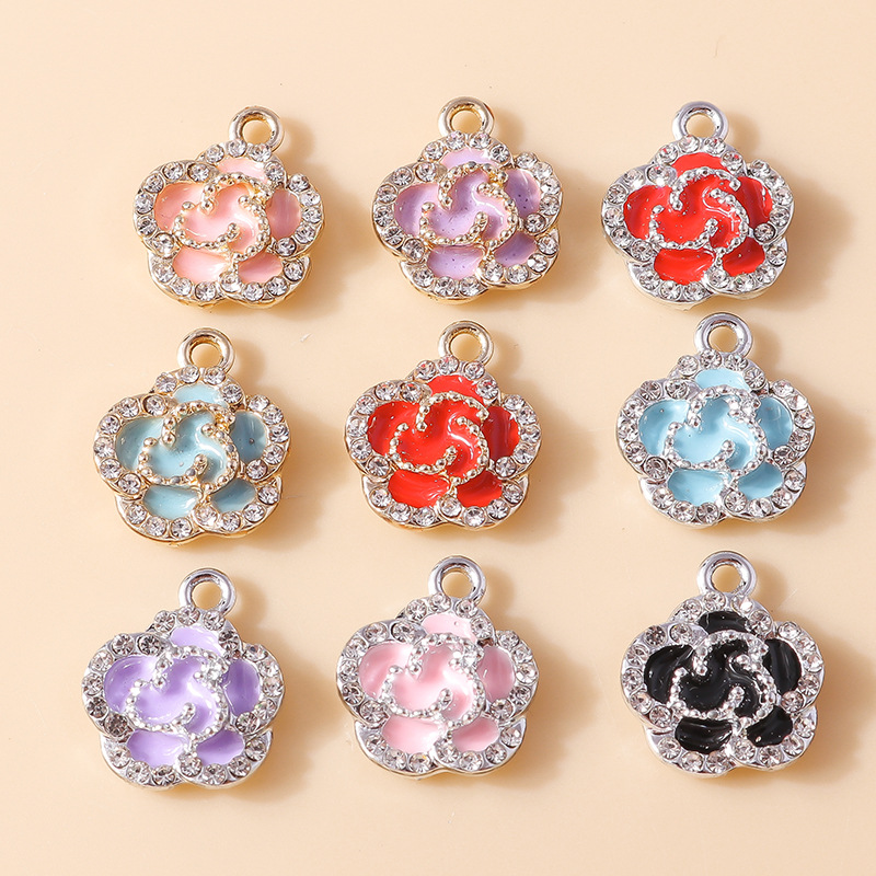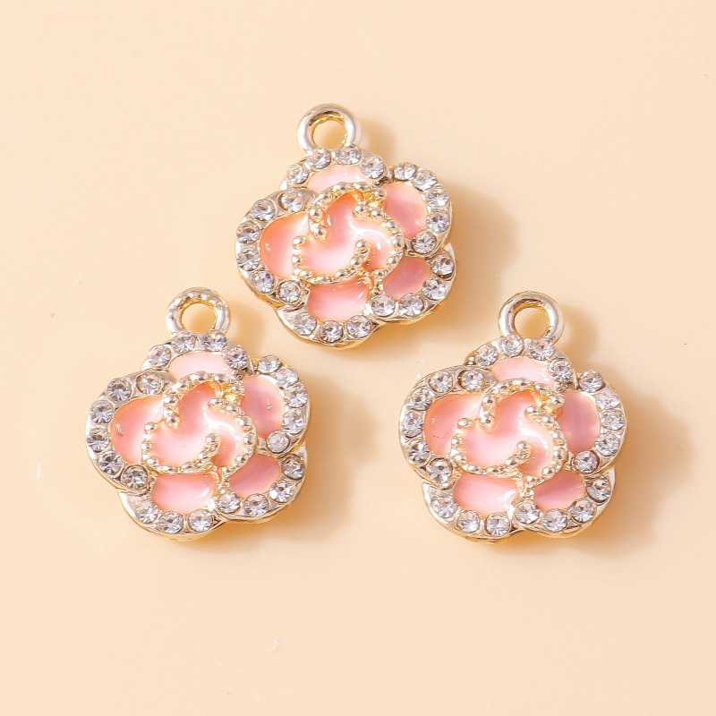 Colgantes de esmalte de la aleación del cinc, aleación de zinc, Rosa, chapado, Bricolaje & con diamantes de imitación, más colores para la opción, 10PCs/Bolsa, Vendido por Bolsa