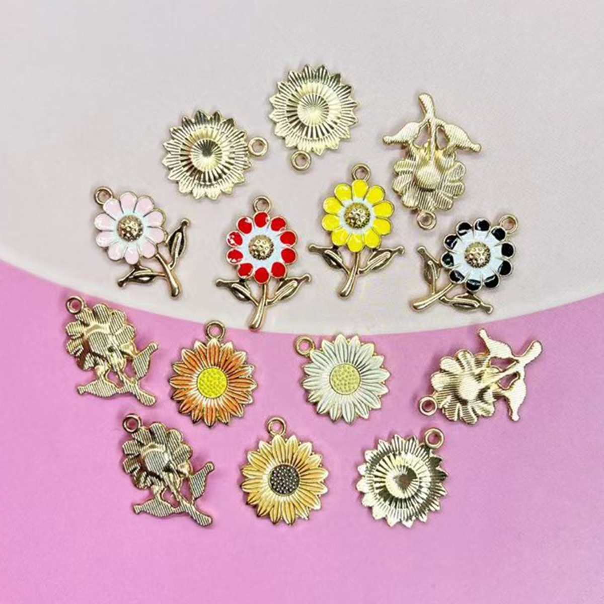 Colgantes de esmalte de la aleación del cinc, aleación de zinc, Flor, chapado en color dorado, Bricolaje & diverso tamaño para la opción, más colores para la opción, aproximado 100PCs/Bolsa, Vendido por Bolsa