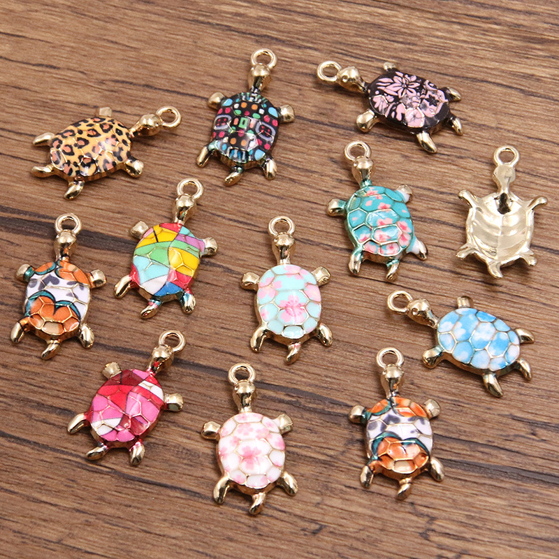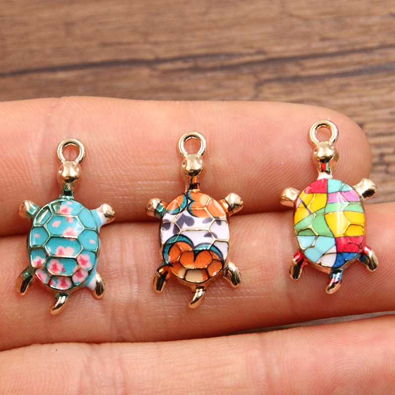 Colgantes de esmalte de la aleación del cinc, aleación de zinc, Tortuga, chapado en color dorado, Bricolaje, más colores para la opción, 13x24mm, aproximado 100PCs/Bolsa, Vendido por Bolsa