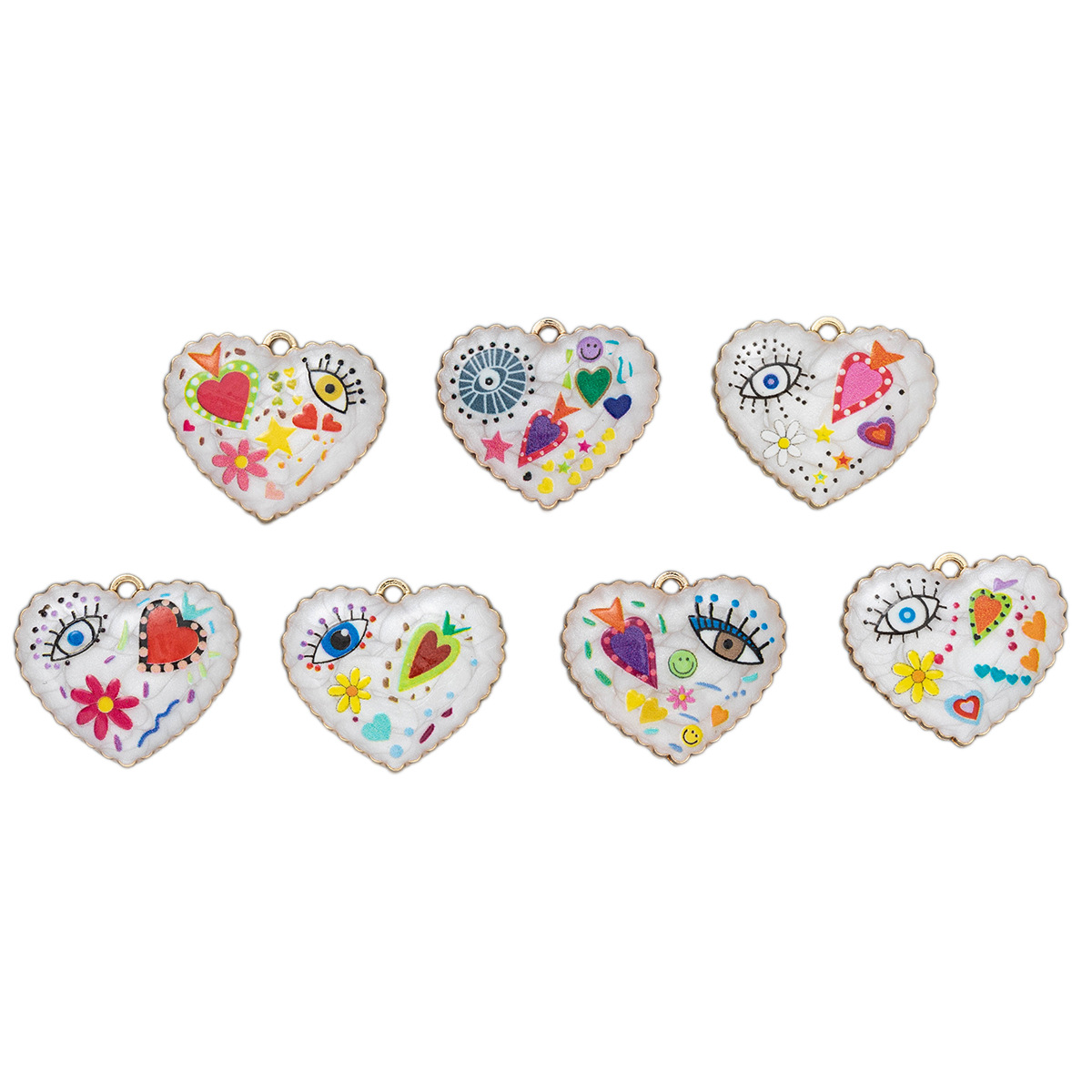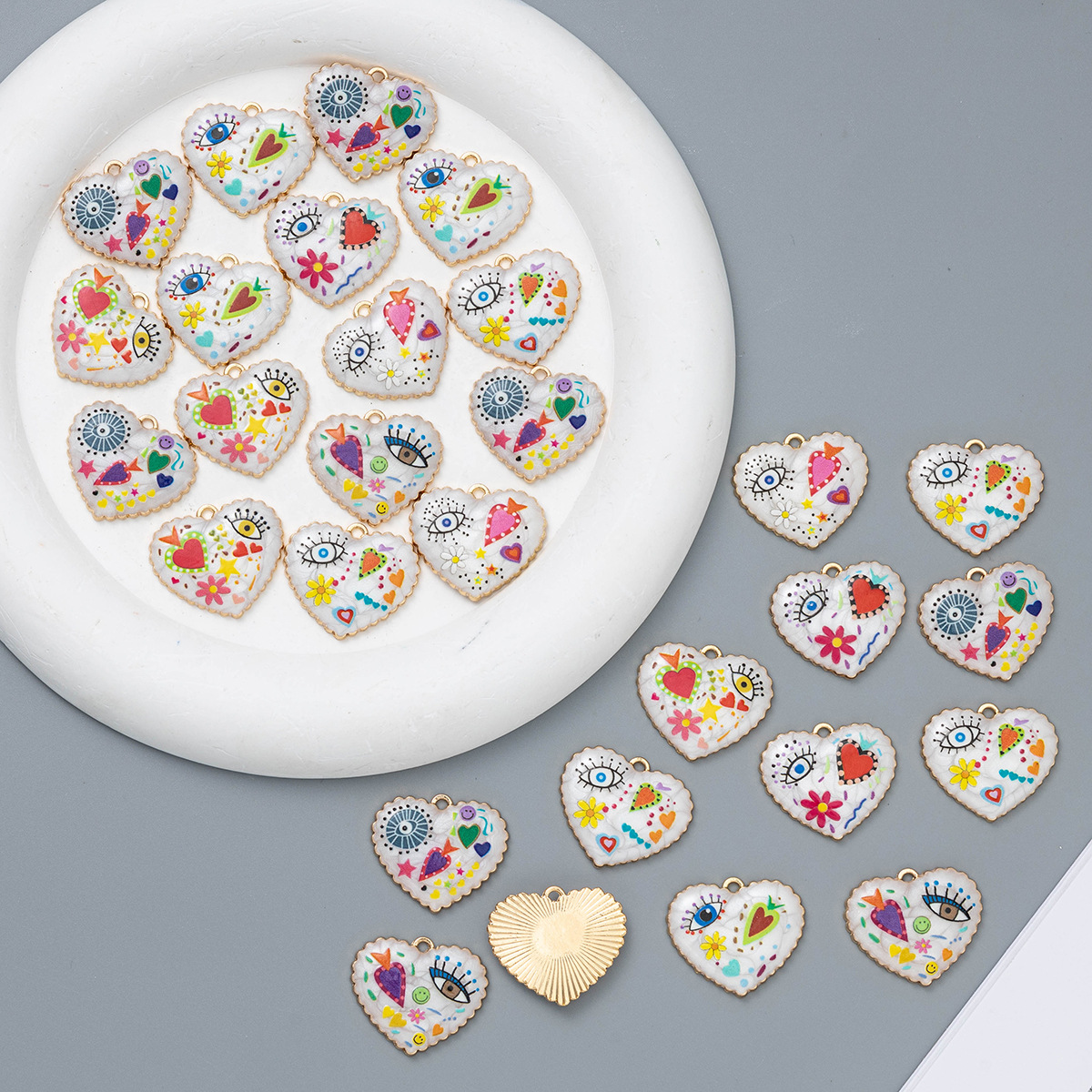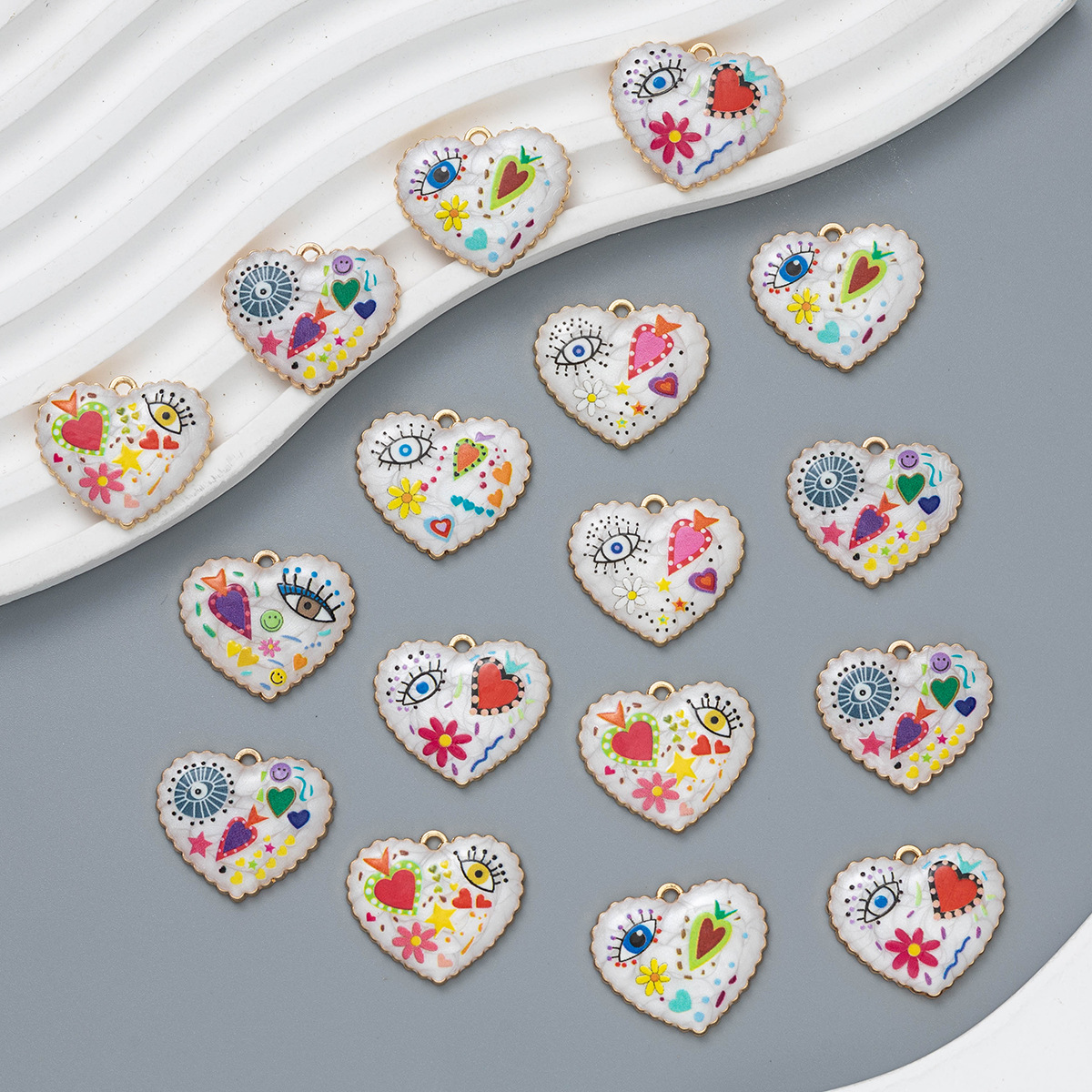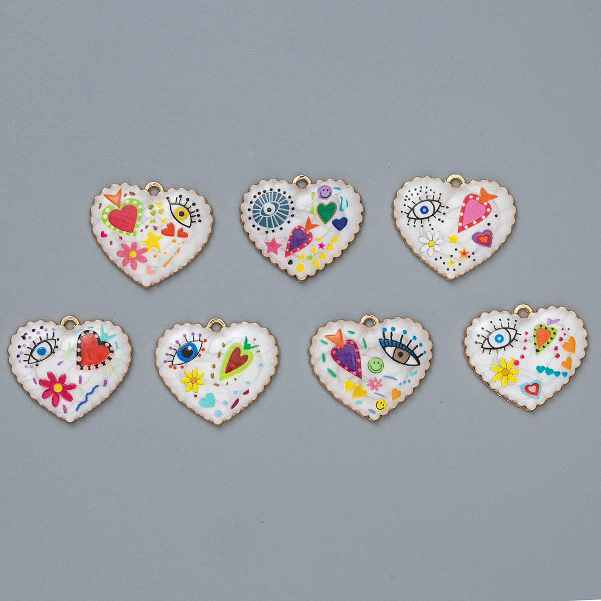 Colgantes de esmalte de la aleación del cinc, aleación de zinc, Corazón, chapado en color dorado, Bricolaje & diferentes patrones para la opción, 4PCs/Bolsa, Vendido por Bolsa