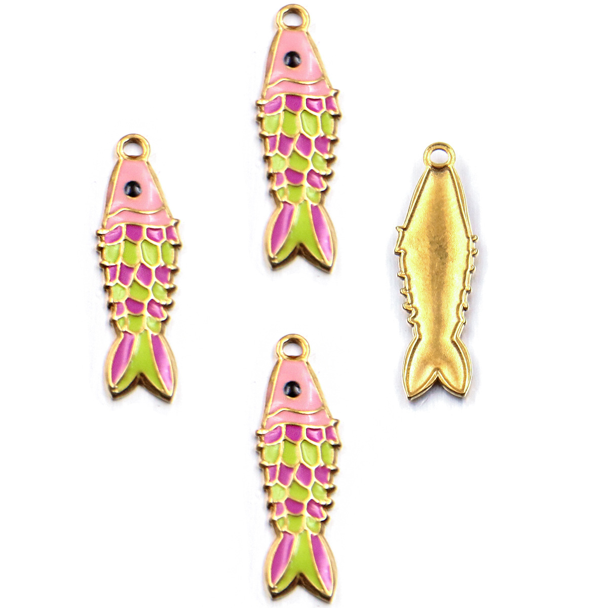 colgantes de acero inoxidable de esmalte, acero inoxidable 304, chapado en color dorado, Bricolaje, más colores para la opción, 3PCs/Bolsa, Vendido por Bolsa