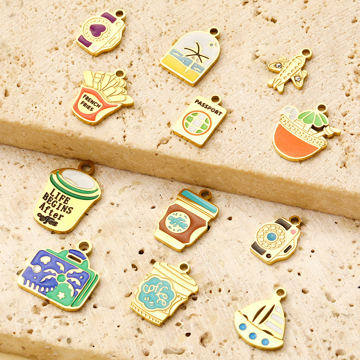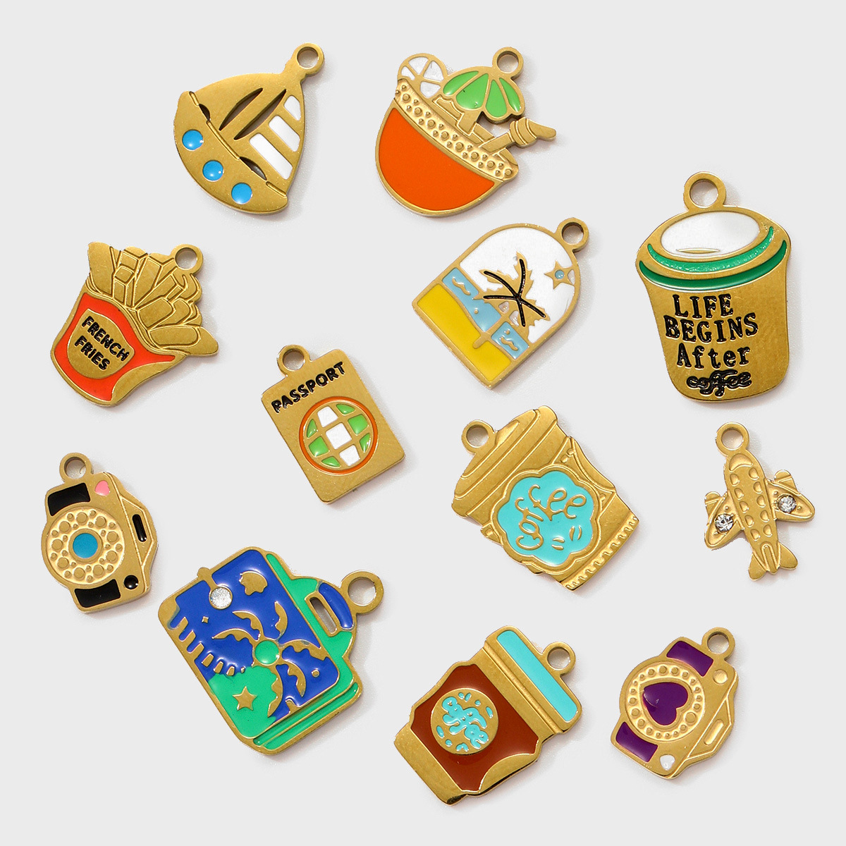 Colgantes de acero inoxidable de diamantes de imitación , acero inoxidable 304, chapado en color dorado, Bricolaje & esmalte & con diamantes de imitación, más colores para la opción, 3PCs/Bolsa, Vendido por Bolsa