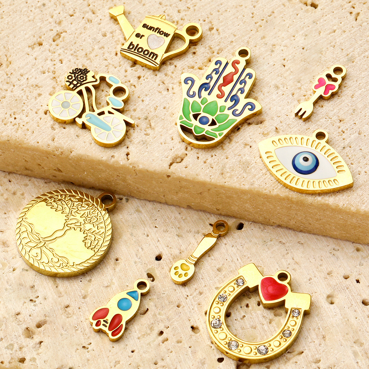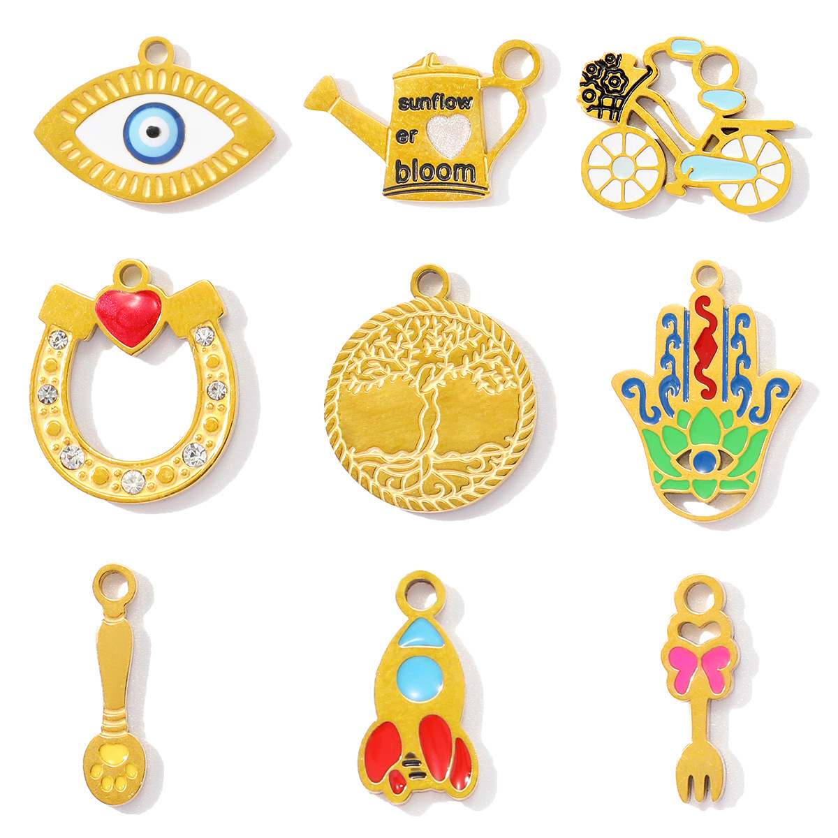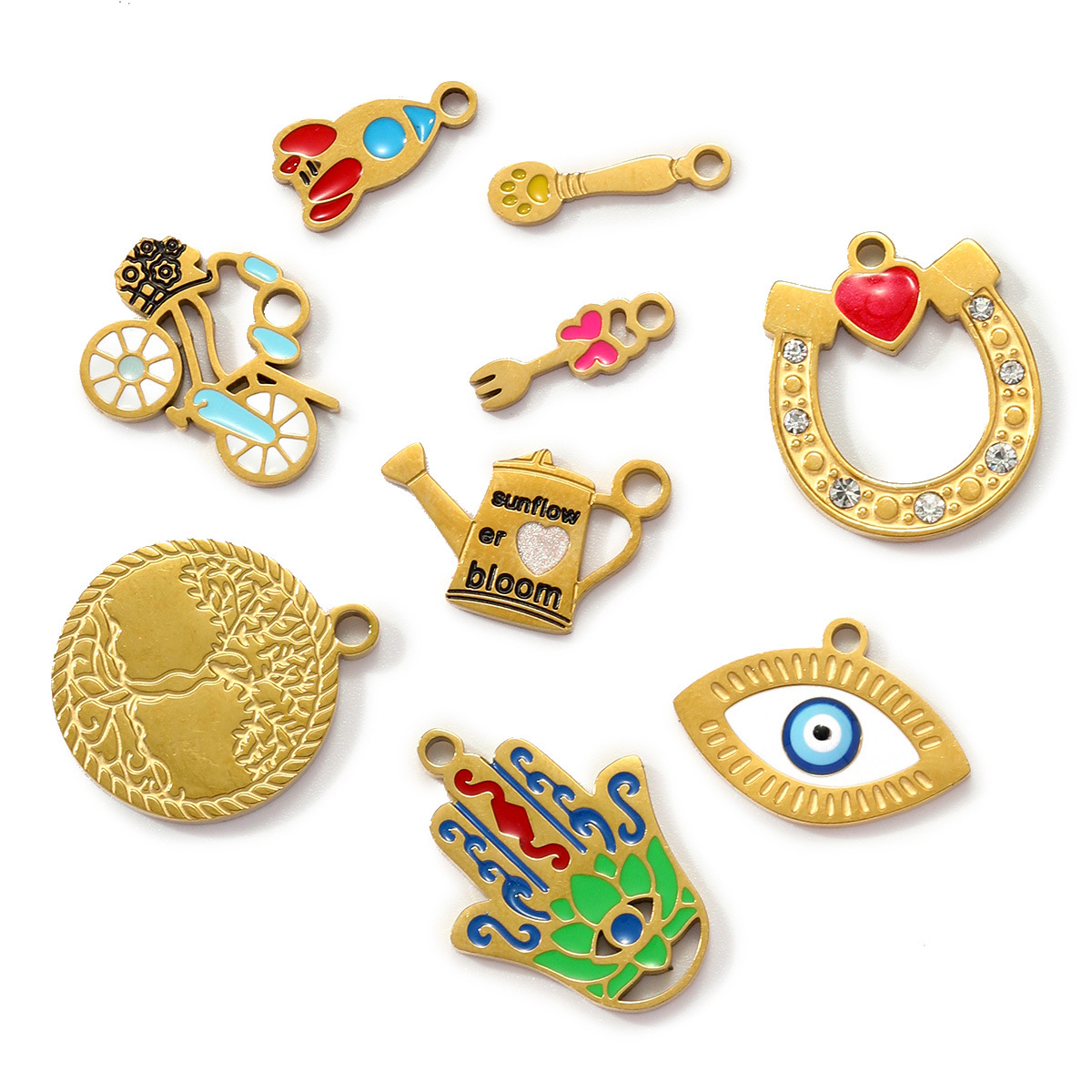 Colgantes de acero inoxidable de diamantes de imitación , acero inoxidable 304, chapado en color dorado, Bricolaje & esmalte & con diamantes de imitación, más colores para la opción, 3PCs/Bolsa, Vendido por Bolsa