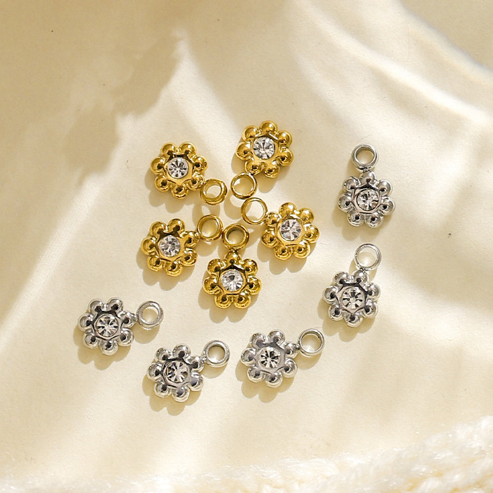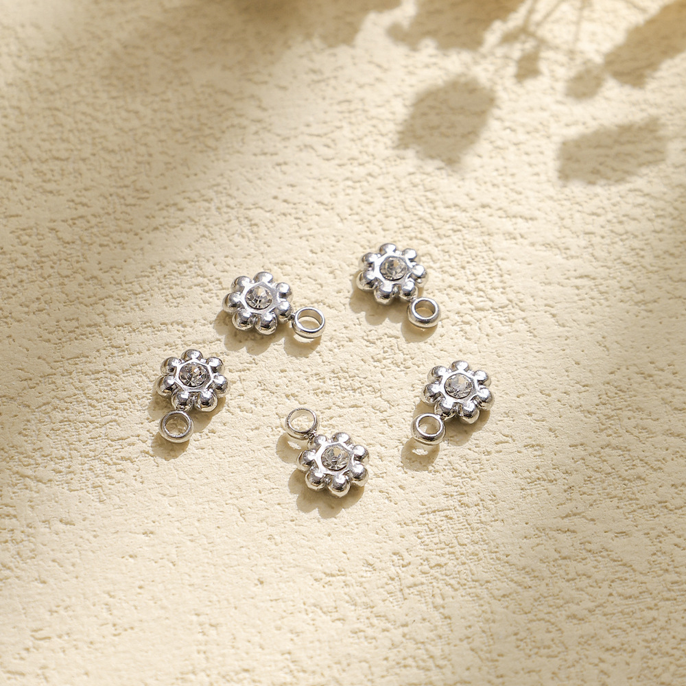 colgantes del acero inoxidable con cúbico zirconia, acero inoxidable 304, Flor, chapado, Bricolaje & micro arcilla de zirconia cúbica, más colores para la opción, 10PCs/Bolsa, Vendido por Bolsa
