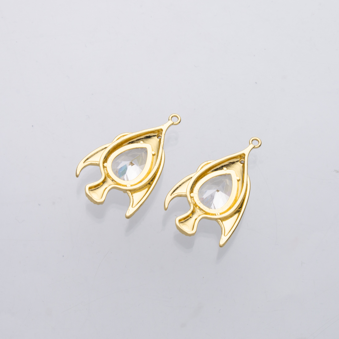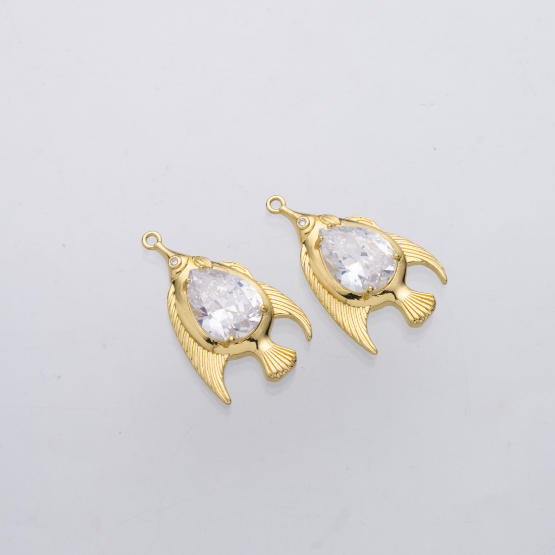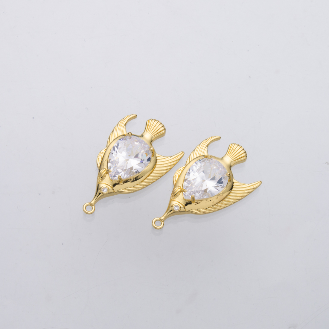Colgantes de latón cúbicos Circonia (CZ), metal, con cúbica circonia, Pez, chapado en color dorado, Bricolaje, 37x23x7mm, Vendido por UD