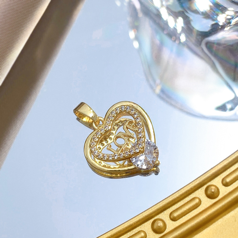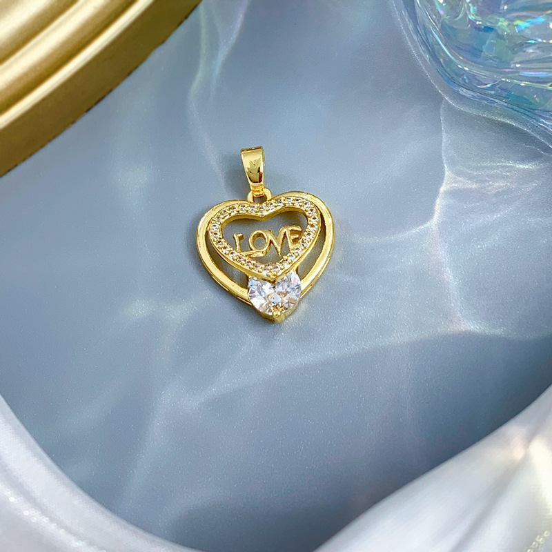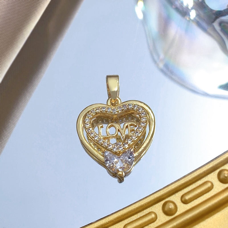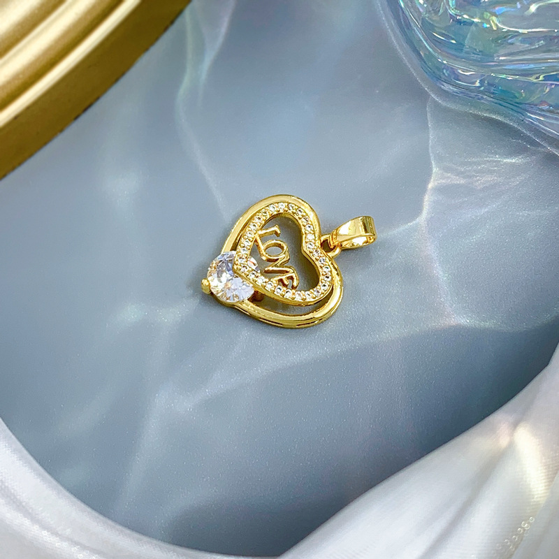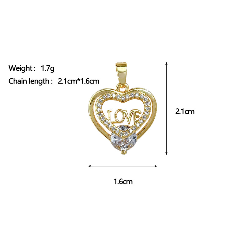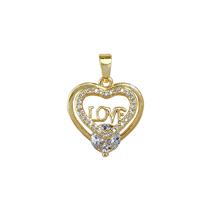 Colgantes de latón cúbicos Circonia (CZ), metal, Corazón, chapado en oro real, Bricolaje & micro arcilla de zirconia cúbica & hueco, Vendido por UD