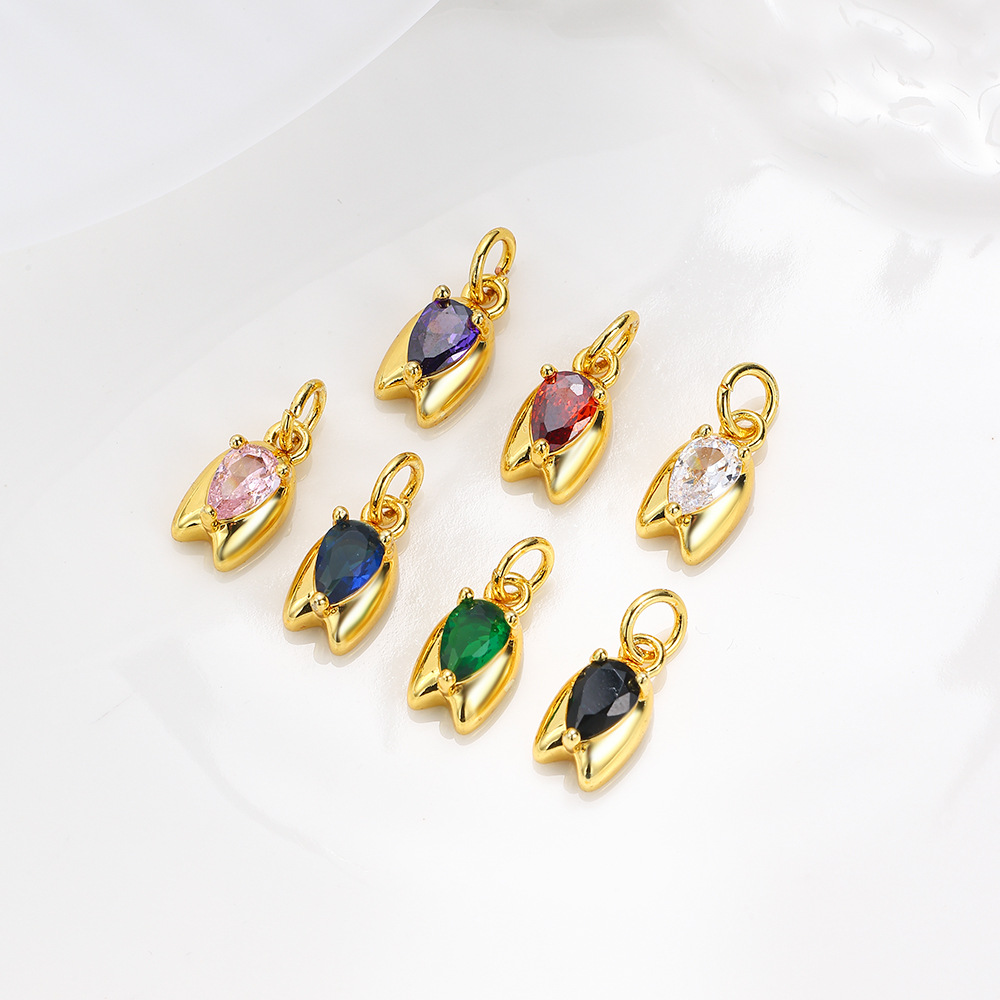 Colgantes de latón cúbicos Circonia (CZ), metal, con cúbica circonia, Tulipán, chapado en color dorado, Bricolaje, más colores para la opción, 6x15mm, Vendido por UD