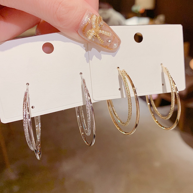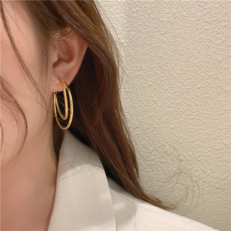 Pendiente del aro de latón, metal, chapado, Doble capa & Joyería & para mujer, más colores para la opción, 39x36mm, Vendido por Par