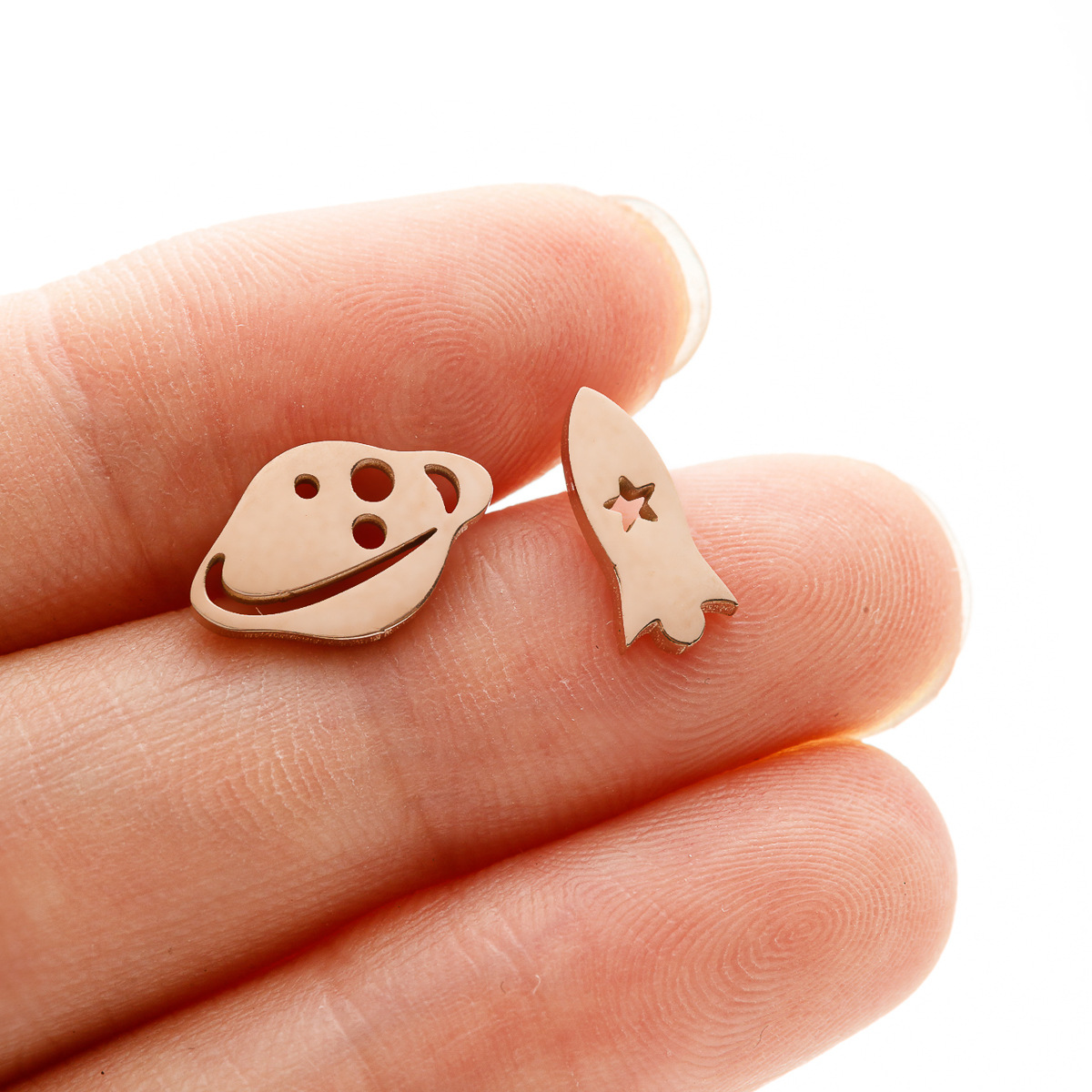 Pendientes asimétricos, acero inoxidable, latón aguja de pendiente, Luna y estrella, chapado, para mujer, más colores para la opción, 10x10mm, 10x6mm, Vendido por Par