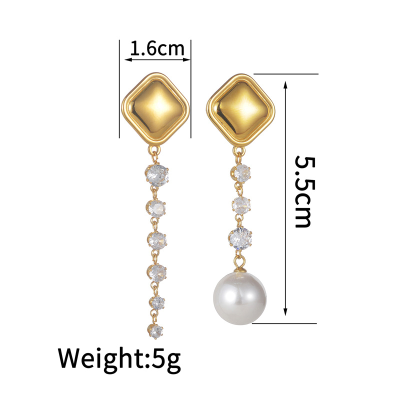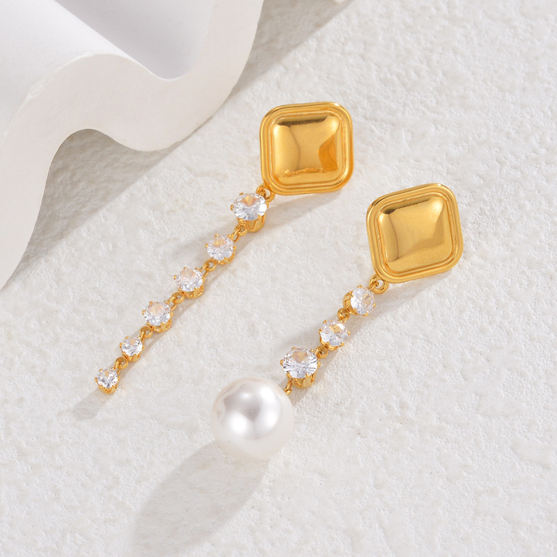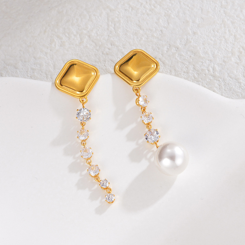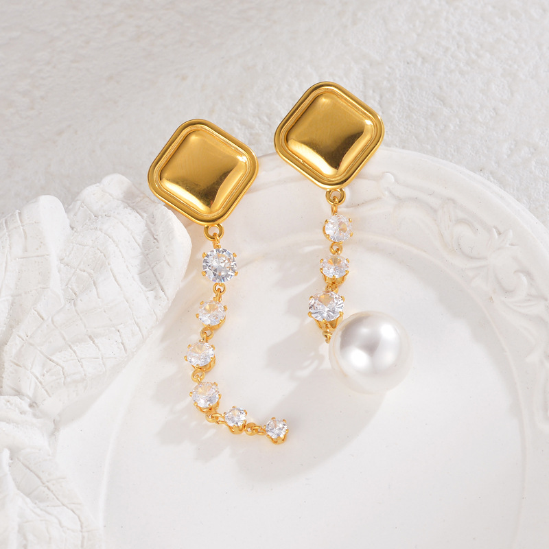 Pendientes asimétricos, acero inoxidable 304, con Perlas plásticas, chapado, Joyería & para mujer & con diamantes de imitación, dorado, Vendido por Par