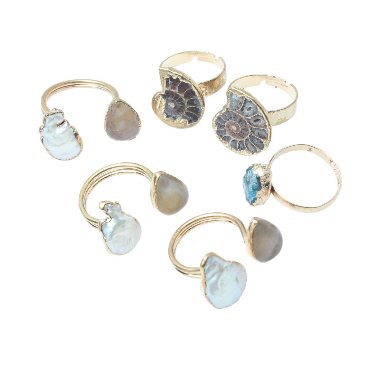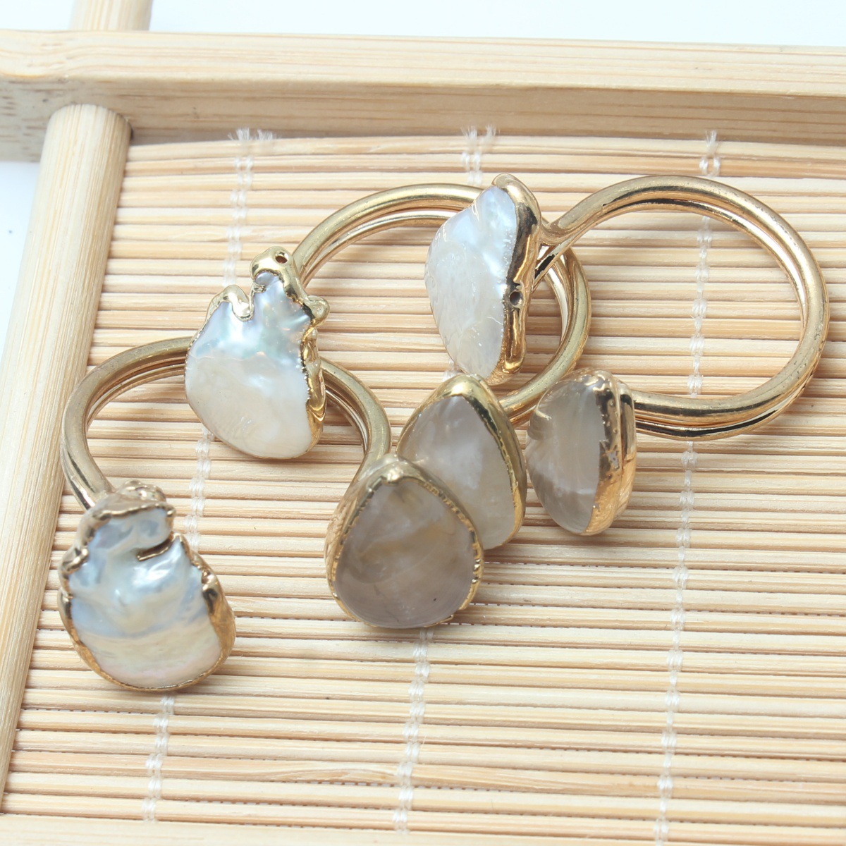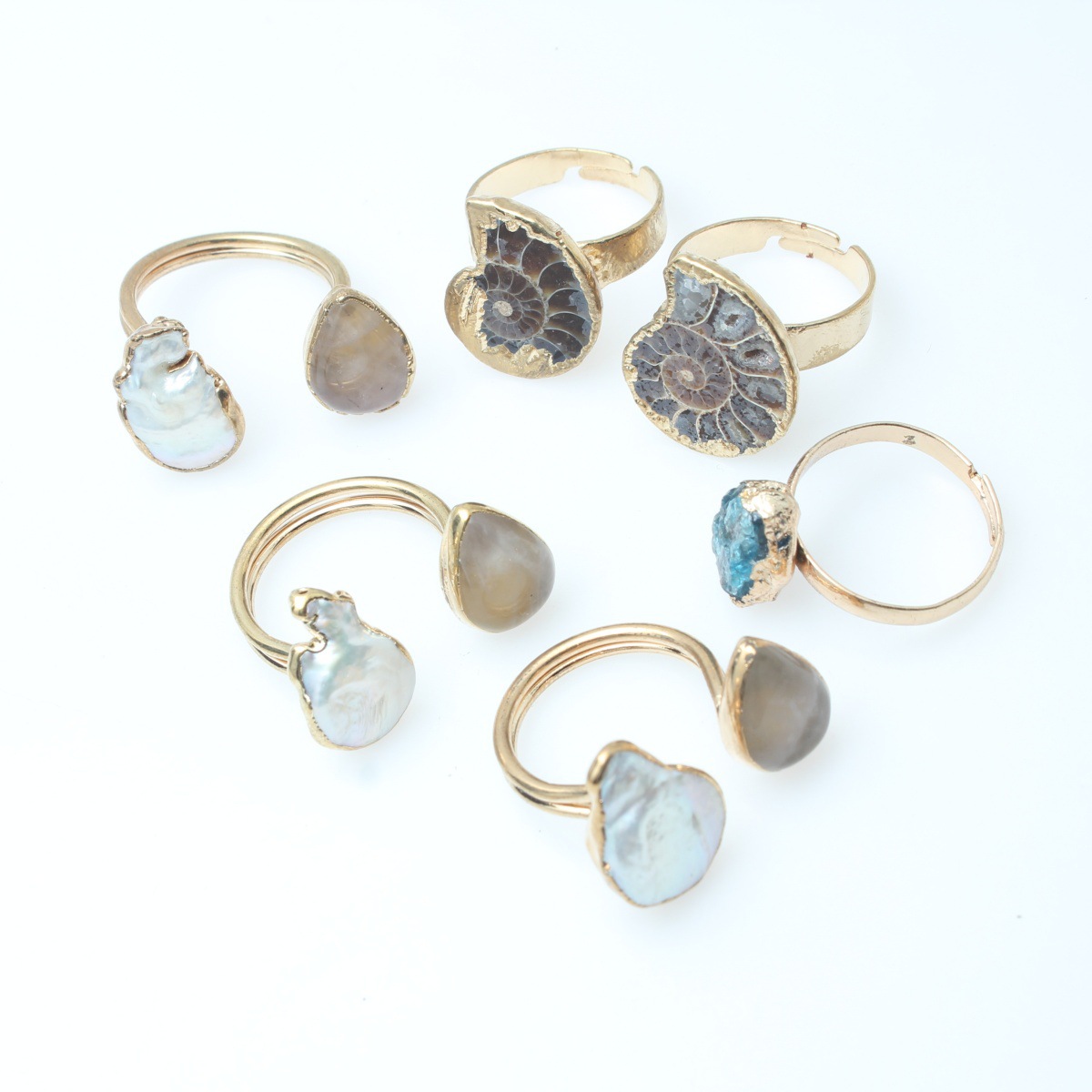 Piedra natural Anillo de dedo Cuff, con Perlas cultivadas de agua dulce & aleación de zinc, chapado en color dorado, enviado al azar & unisexo & ajustable & diferentes estilos para la opción, Vendido por UD