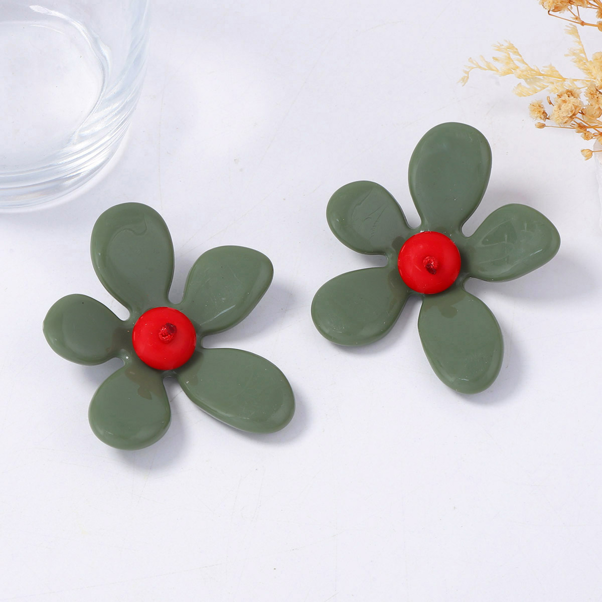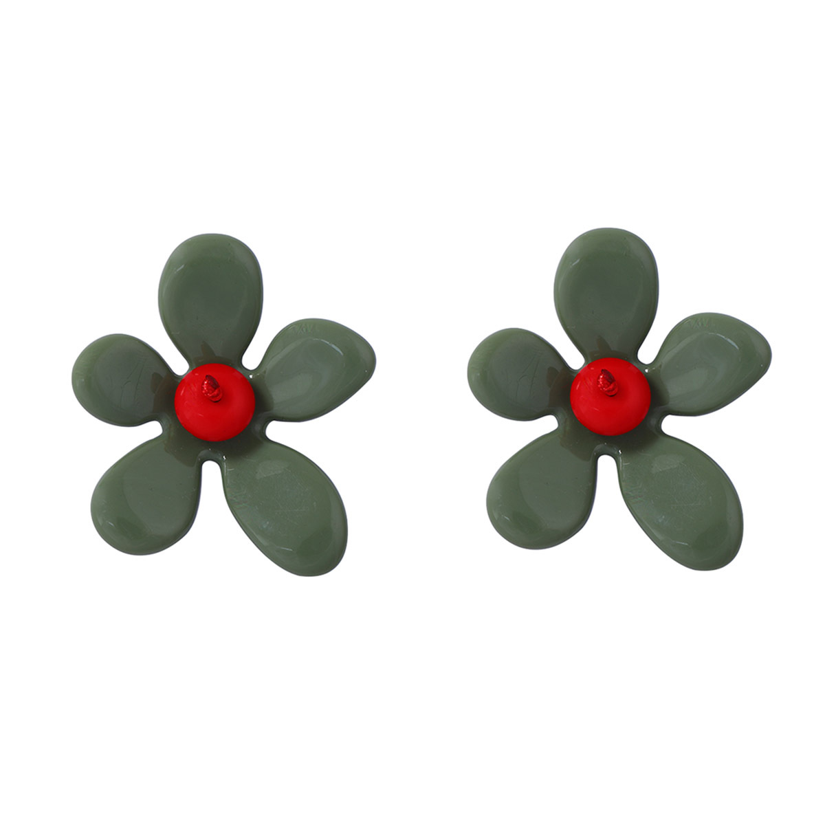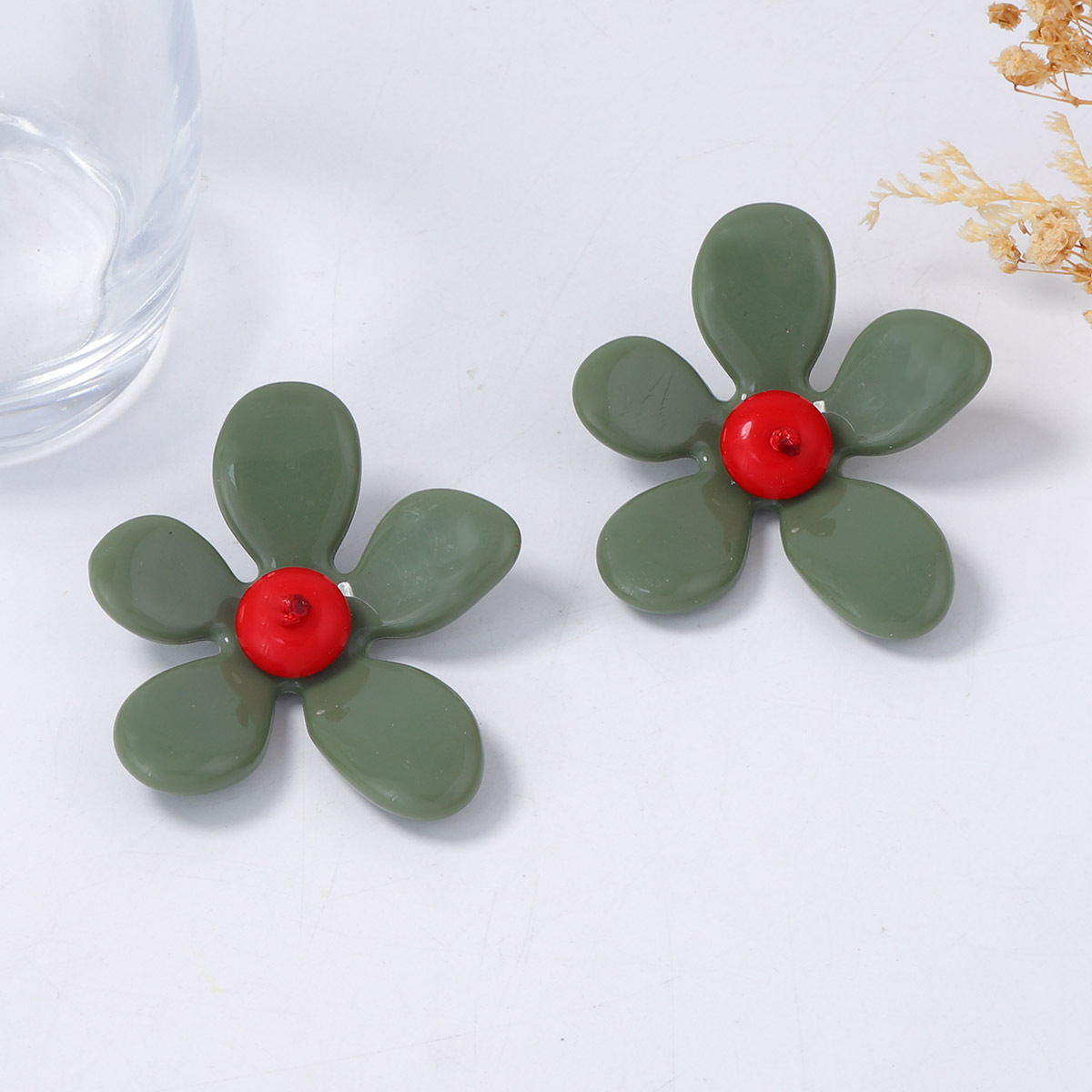 Plástico Arito, Flor, chapado, Joyería & para mujer, verde de oliva, 51x61mm, Vendido por Par