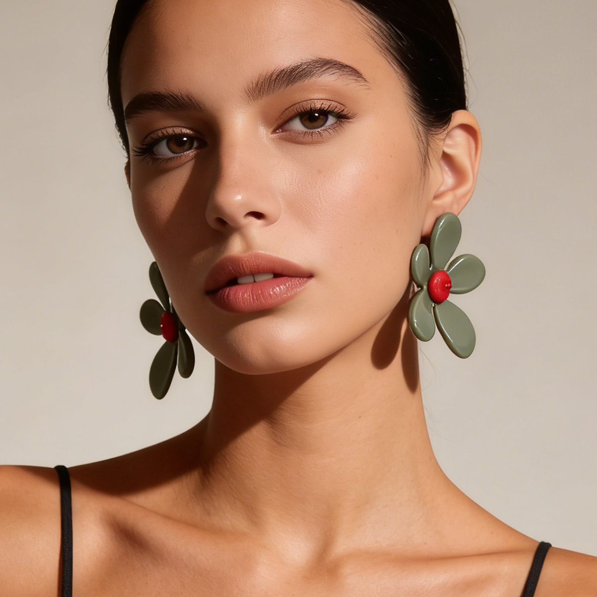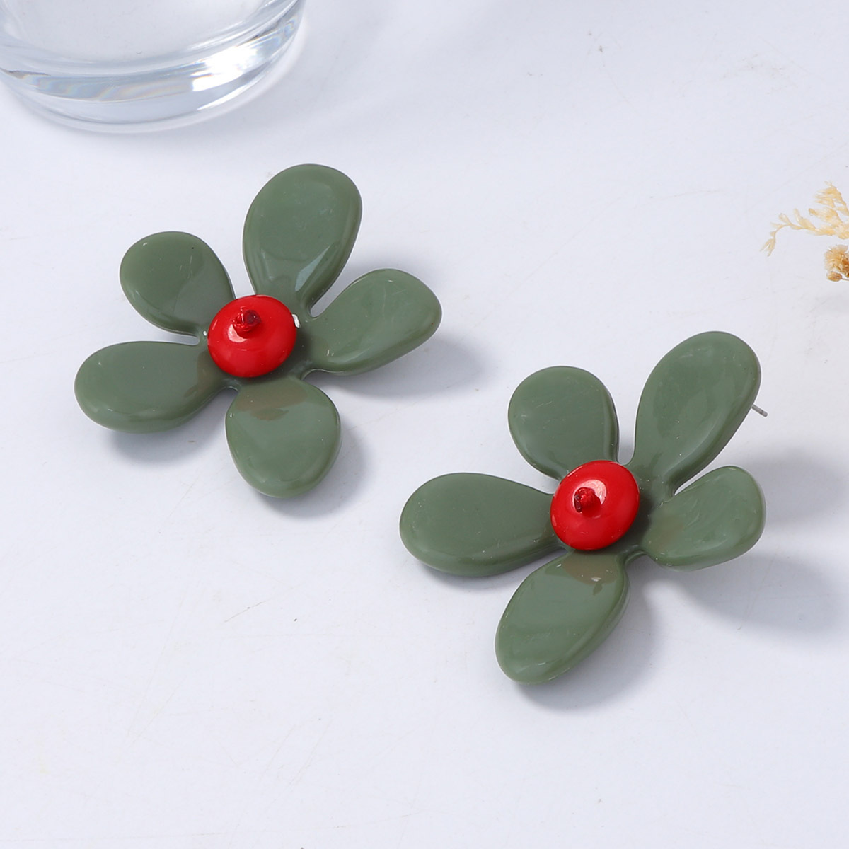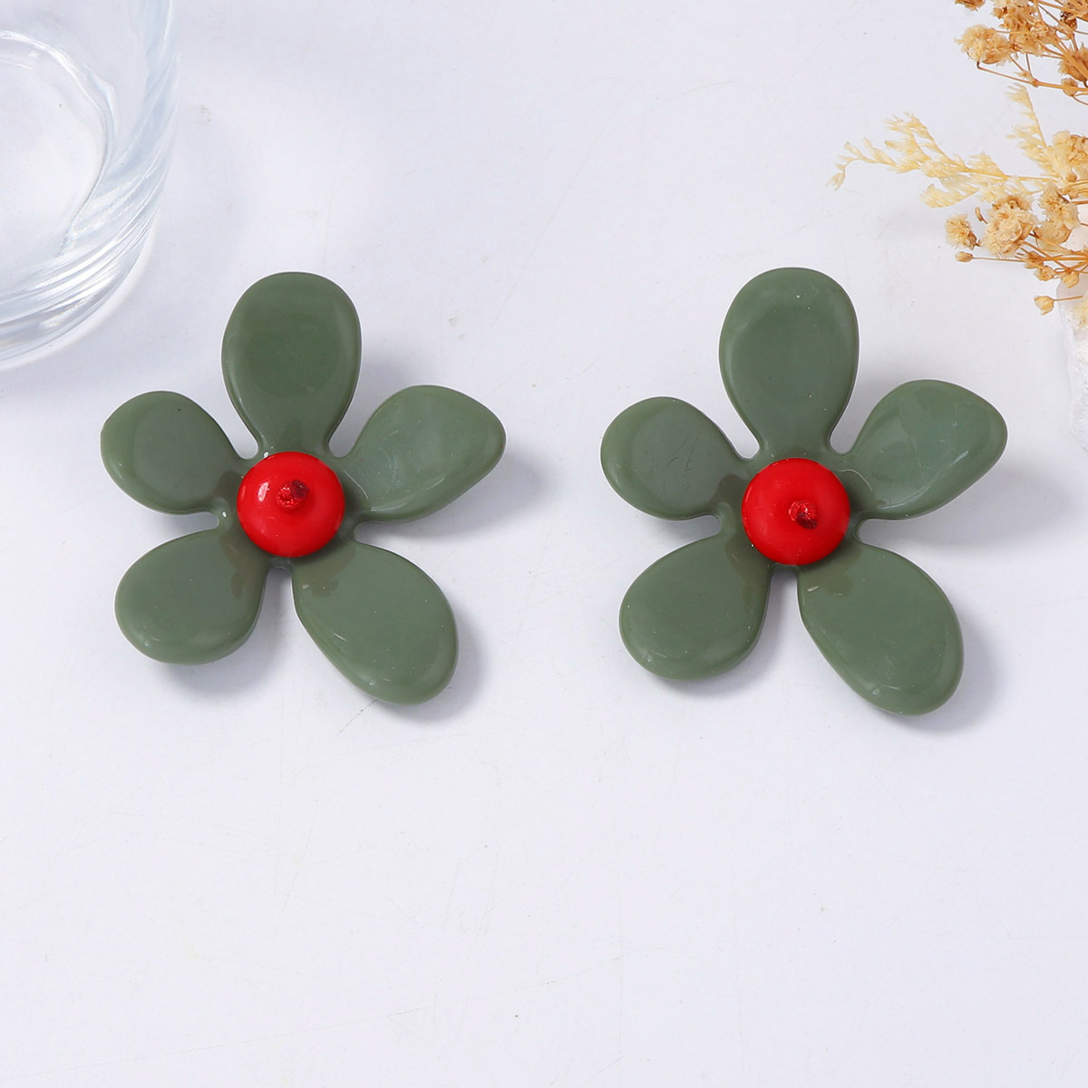 Plástico Arito, Flor, chapado, Joyería & para mujer, verde de oliva, 51x61mm, Vendido por Par