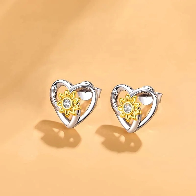 Arete de plata esterlina, plata de ley 925, plata esterlina aguja de pendiente, Flor, chapado, más colores para la opción, longitud:0.5 Inch, Vendido por Par