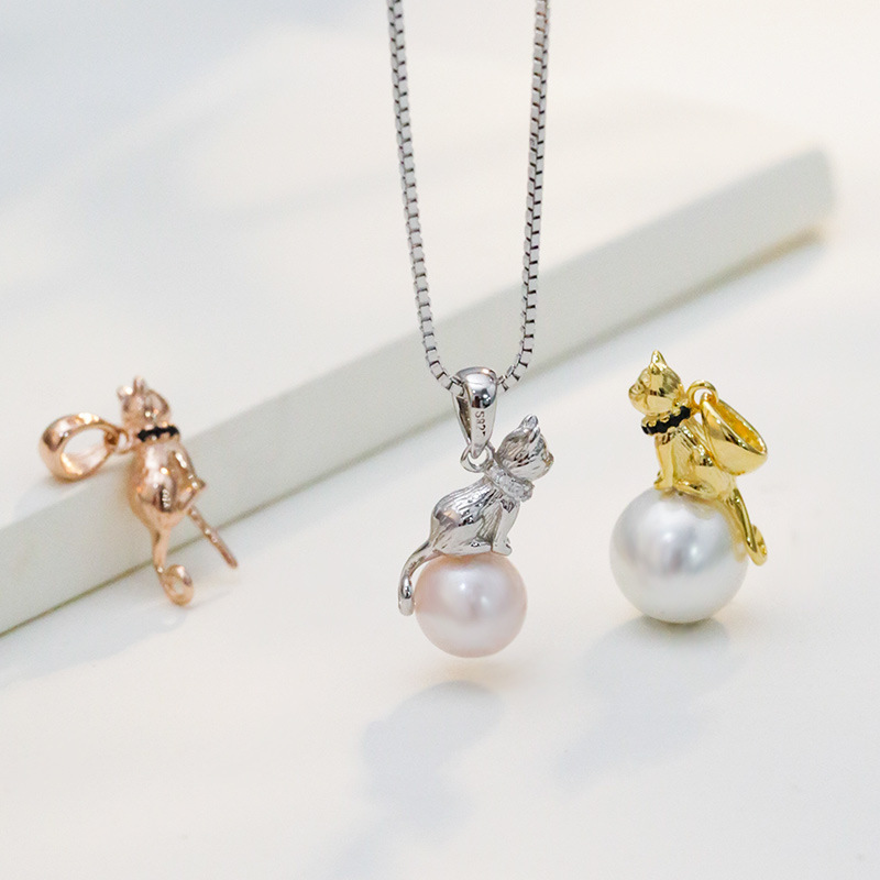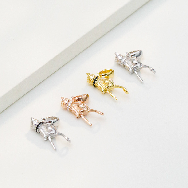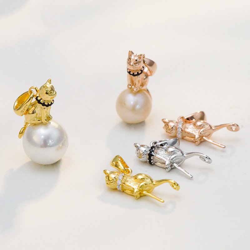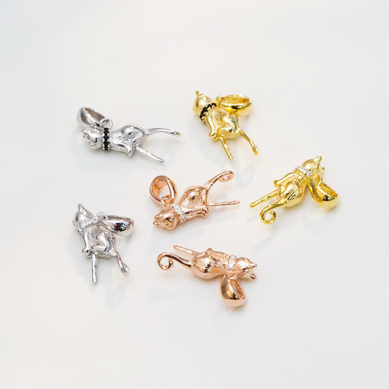 Plata de ley 925 Fianza de medio-perforado, Gato, Bricolaje & con diamantes de imitación, más colores para la opción, Applicable to stone size 10-16mm, Vendido por UD