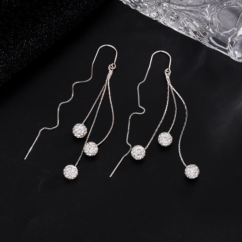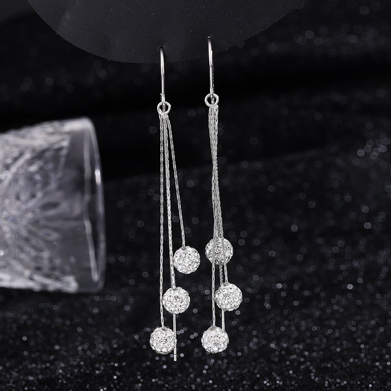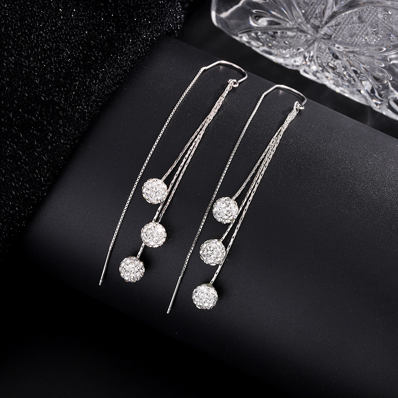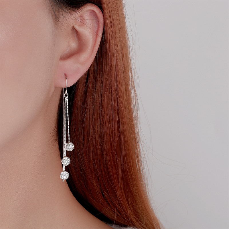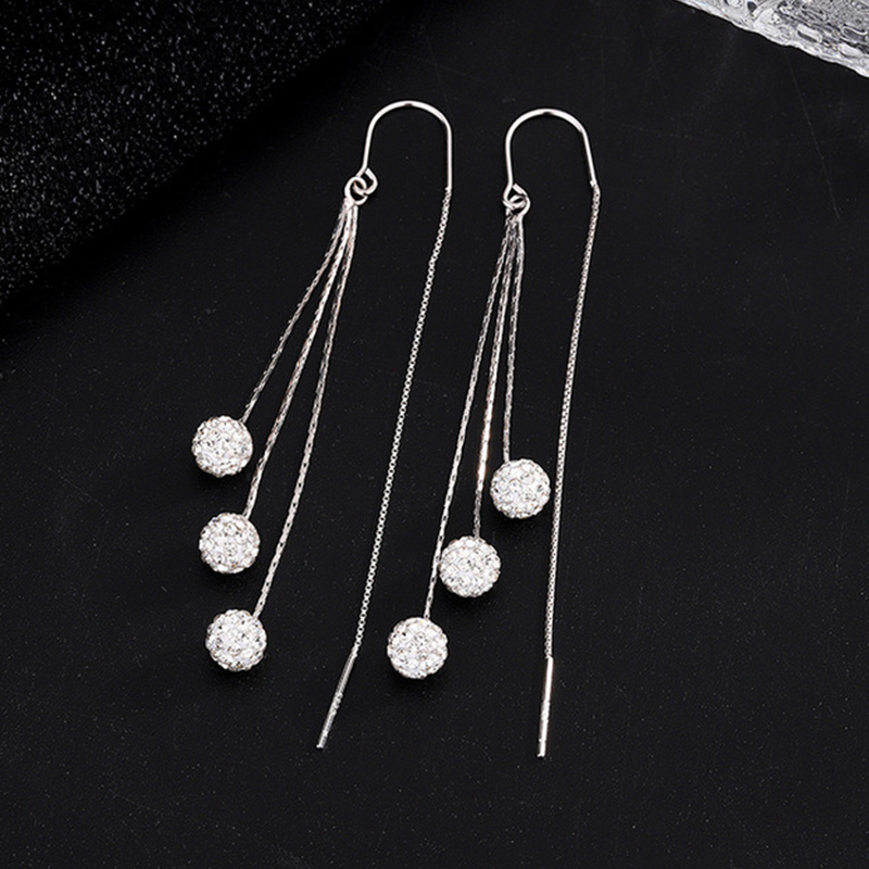 Plata de ley 925 Pendiente de hilo, chapado en platina real, para mujer & con diamantes de imitación, 70mm, Vendido por Par
