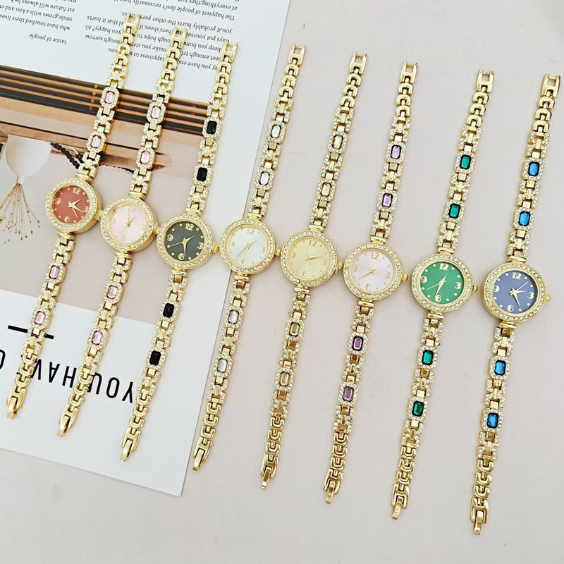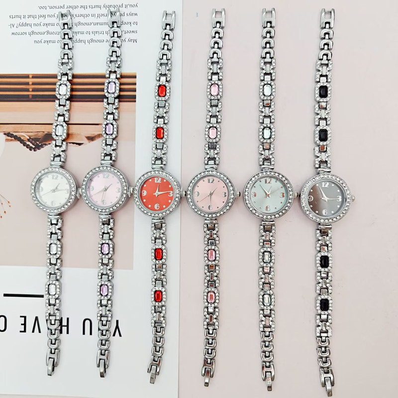 Pulsera Reloj de Moda, aleación de zinc, con Vidrio & Acrílico, movimiento chino & para mujer & con diamantes de imitación, más colores para la opción, Thickness :7mm Dial diameter :22mm., longitud:25 cm, Vendido por UD