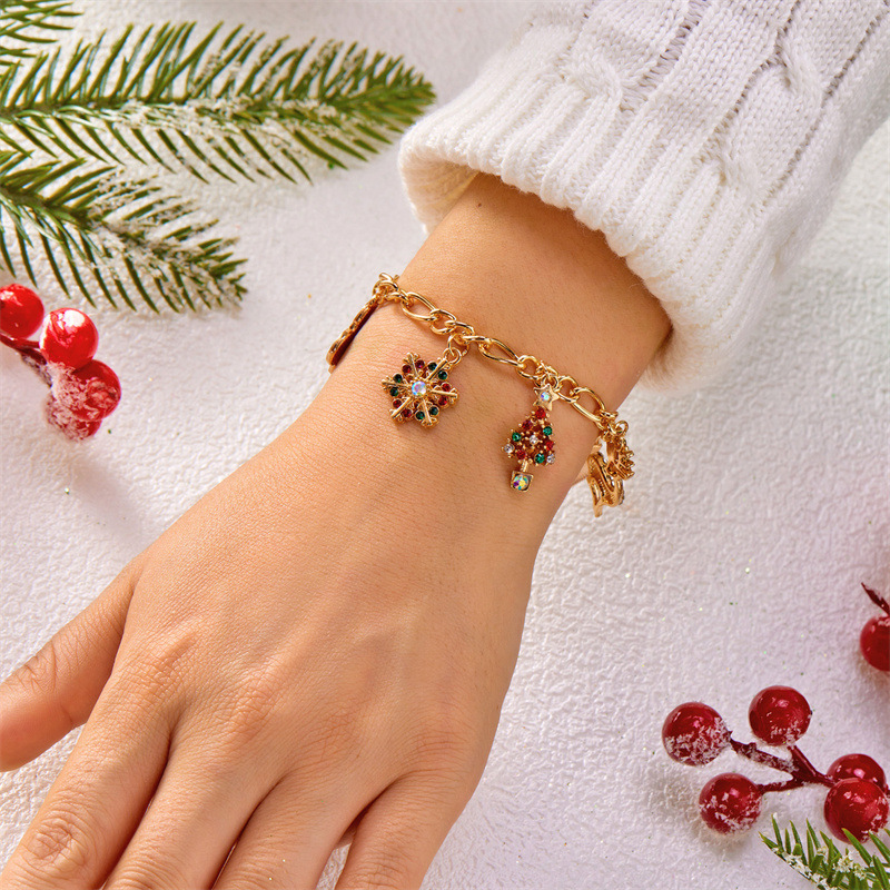 Pulsera de Navidad de la aleación de zinc, con Perlas plásticas, chapado en color dorado, Diseño de Navidad & esmalte & con diamantes de imitación, más colores para la opción, Vendido por UD