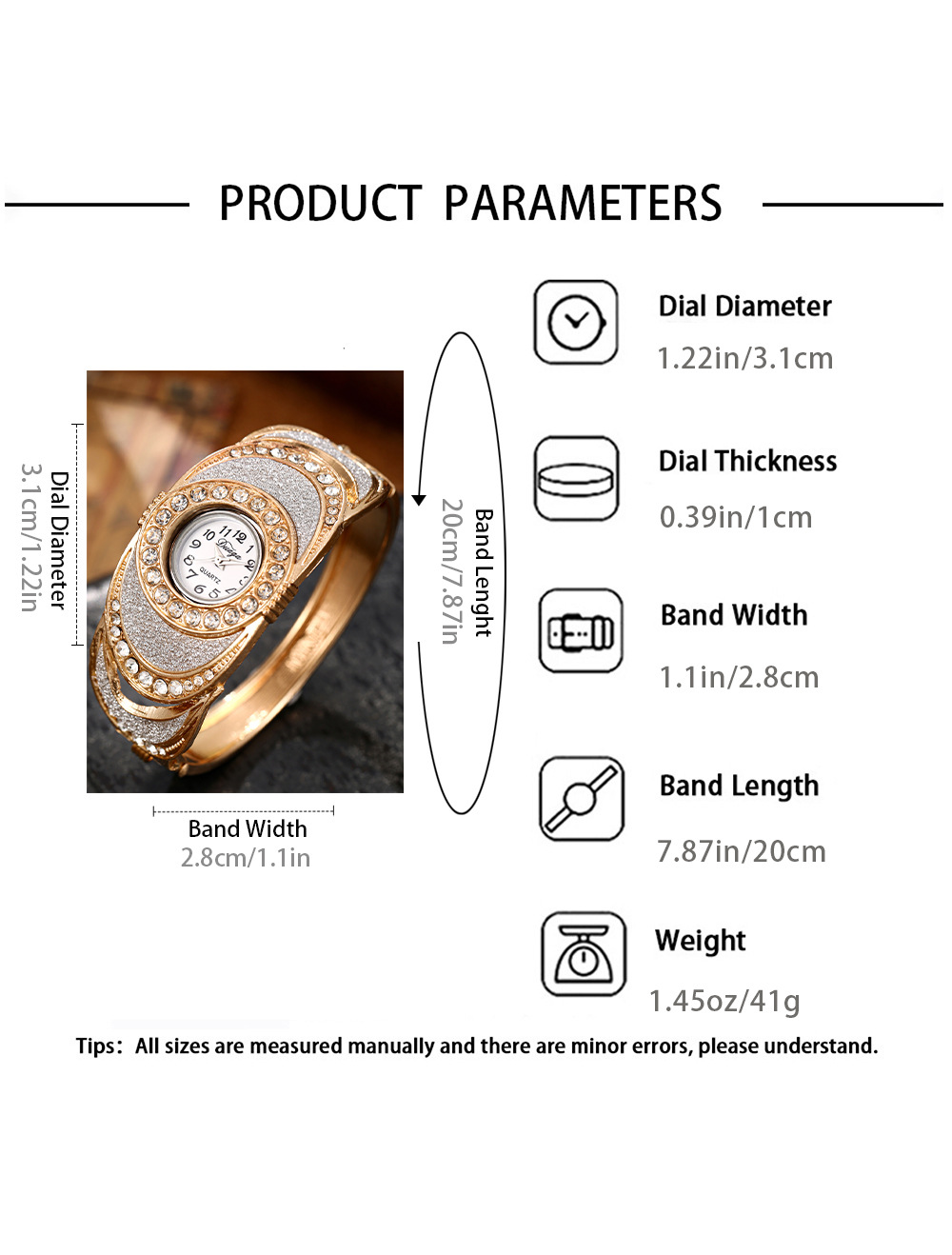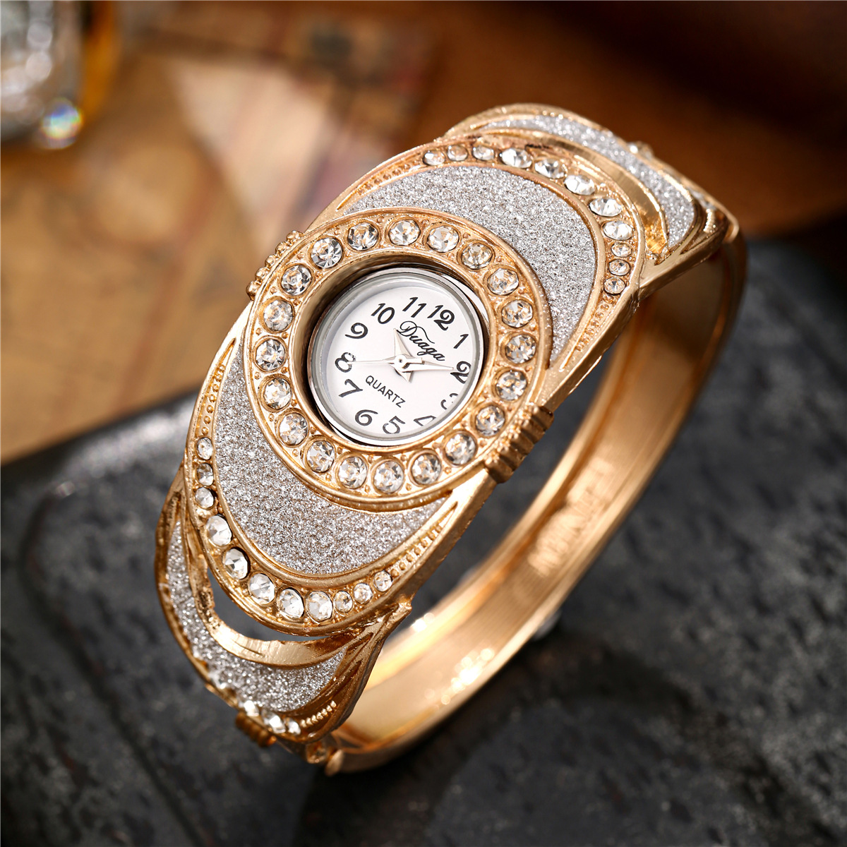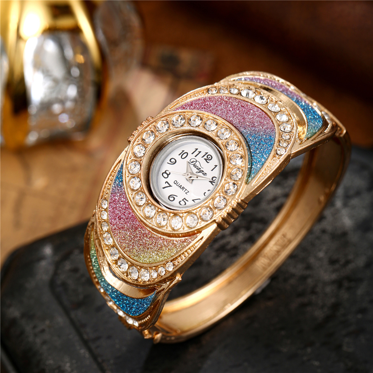 Reloj con brazalete de hierro, Aleación, con Vidrio, chapado, Joyería & para mujer & con diamantes de imitación, más colores para la opción, longitud:20 cm, Vendido por UD