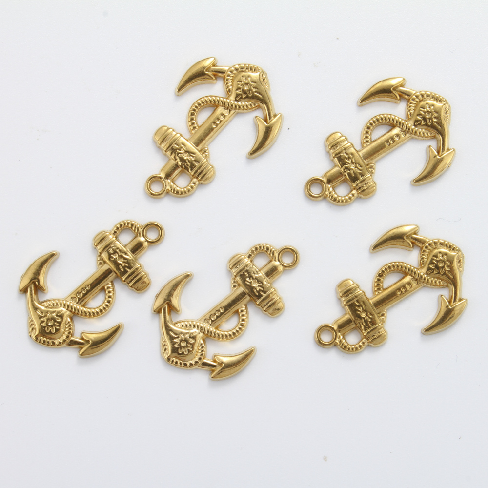 Rueda de barco de acero inoxidable & colgante de anclaje, acero inoxidable 304, chapado en color dorado, Bricolaje, dorado, 29x20x2mm, Vendido por UD