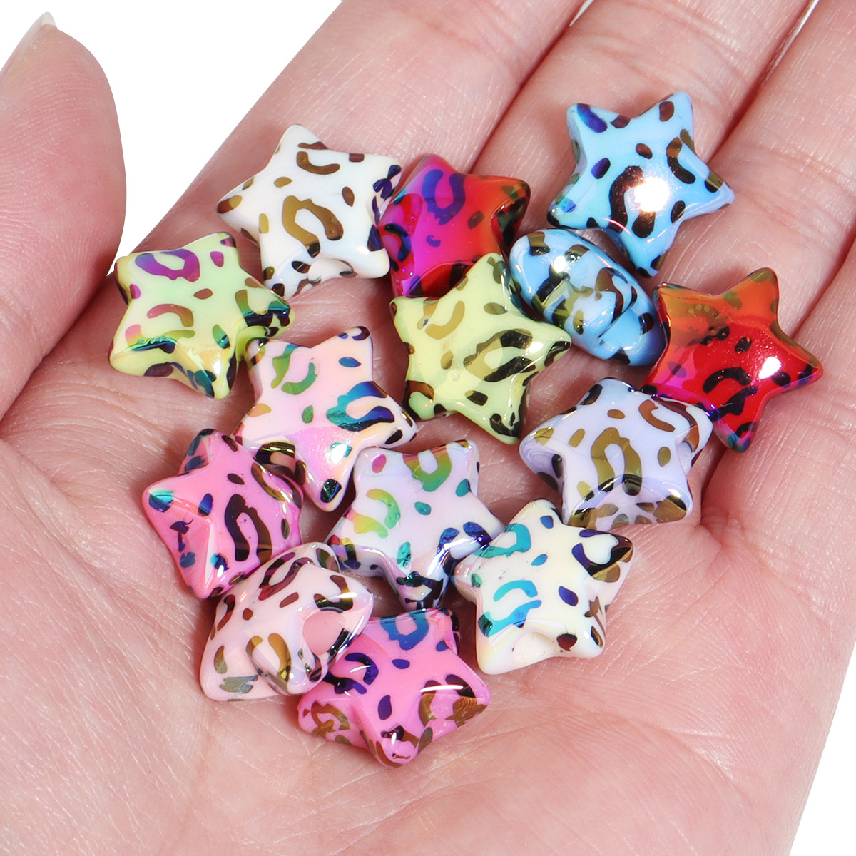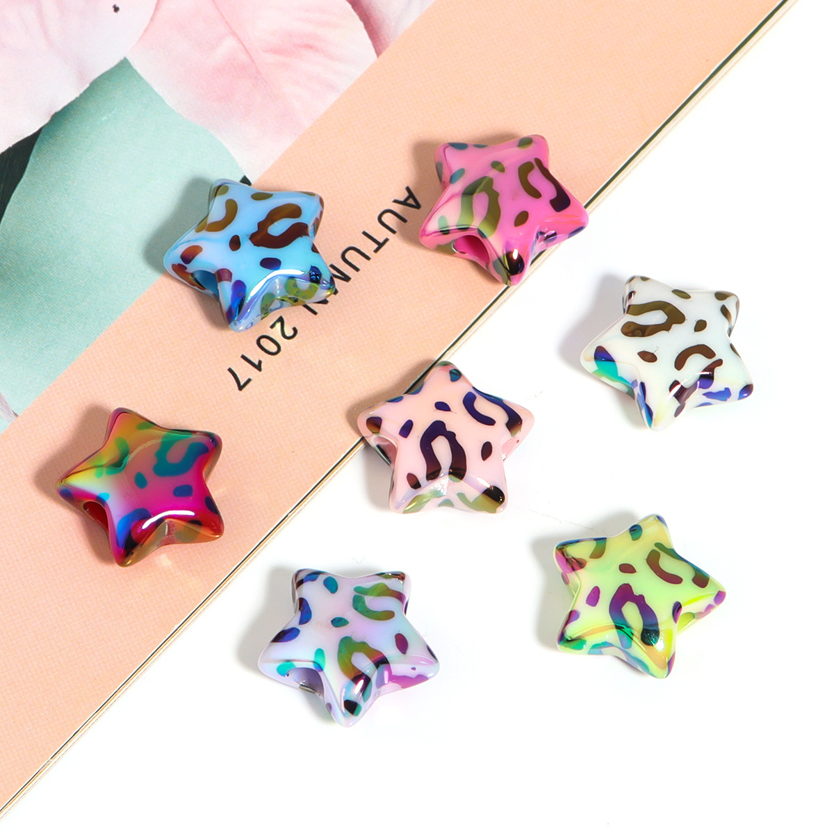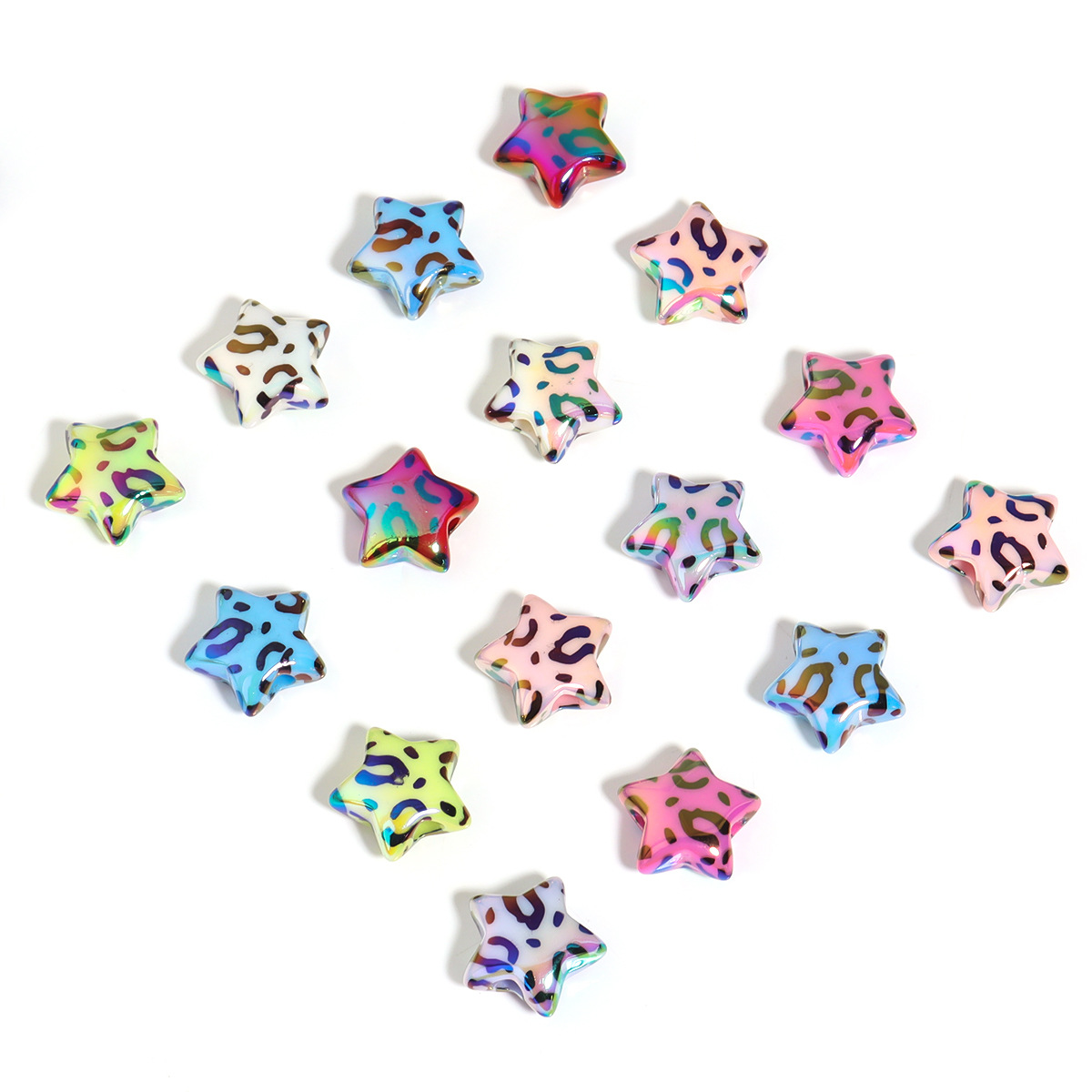Abalorios acrílico mezclado, Estrella, chapado en UV, Bricolaje & patrón de leopardo, más colores para la opción, 15x15x7mm, aproximado 100PCs/Bolsa, Vendido por Bolsa