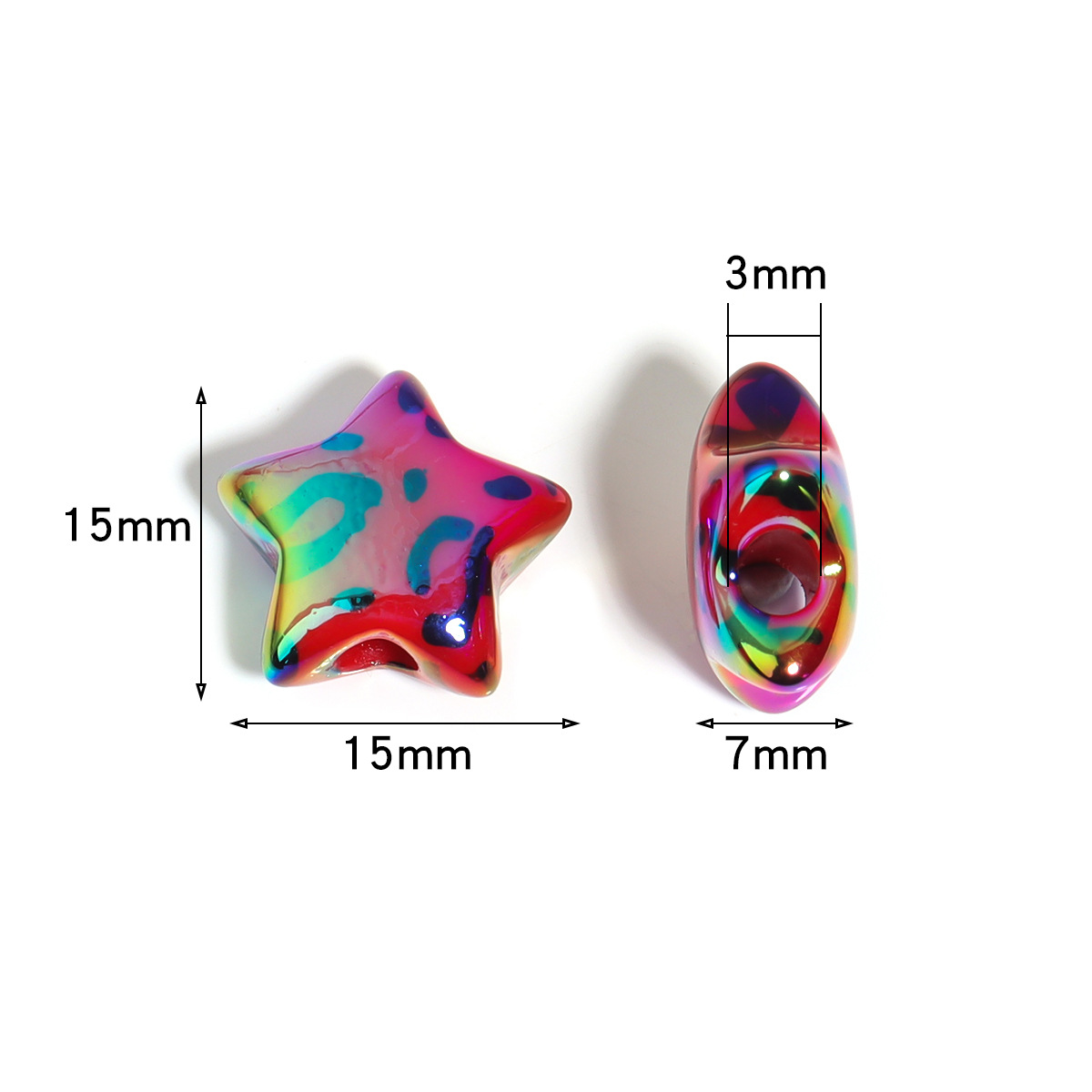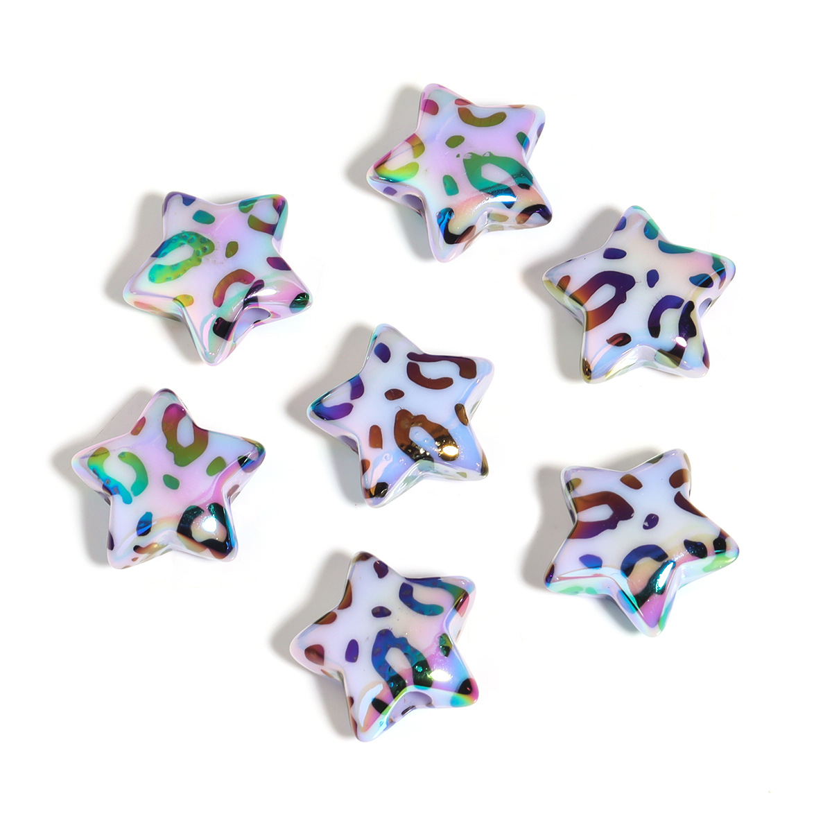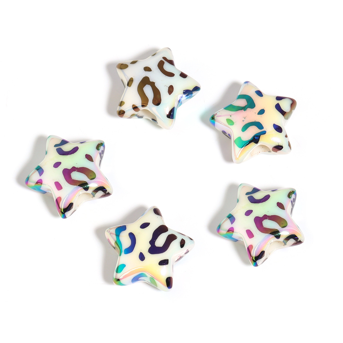 Abalorios acrílico mezclado, Estrella, chapado en UV, Bricolaje & patrón de leopardo, más colores para la opción, 15x15x7mm, aproximado 100PCs/Bolsa, Vendido por Bolsa