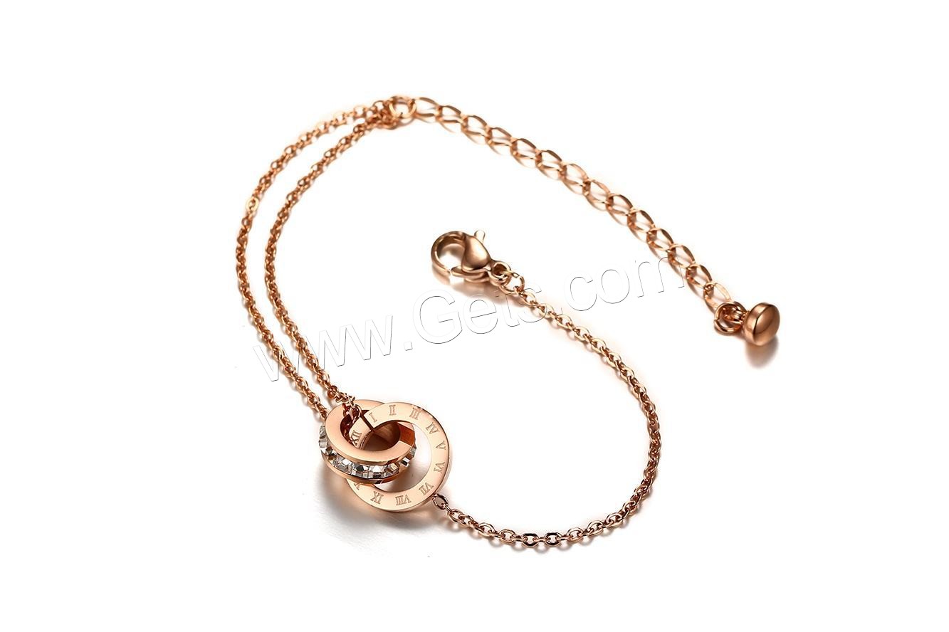 Titanio Acero Pulseras y brazaletes, Partículas de acero, con 2.16inch extender cadena, Recubrimiento iónico al vacío, Joyería & para mujer & con diamantes de imitación, color de rosa dorada, 12mm, longitud:aproximado 5.7 Inch, Vendido por UD