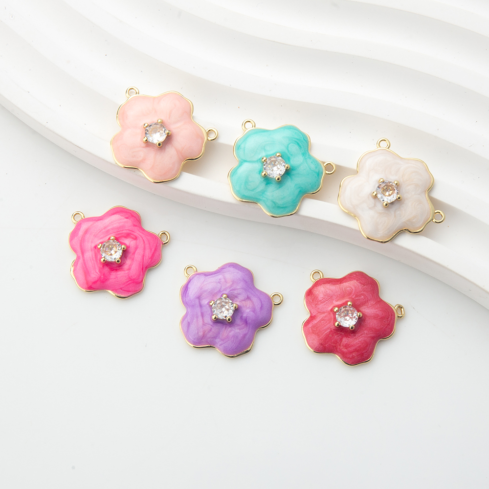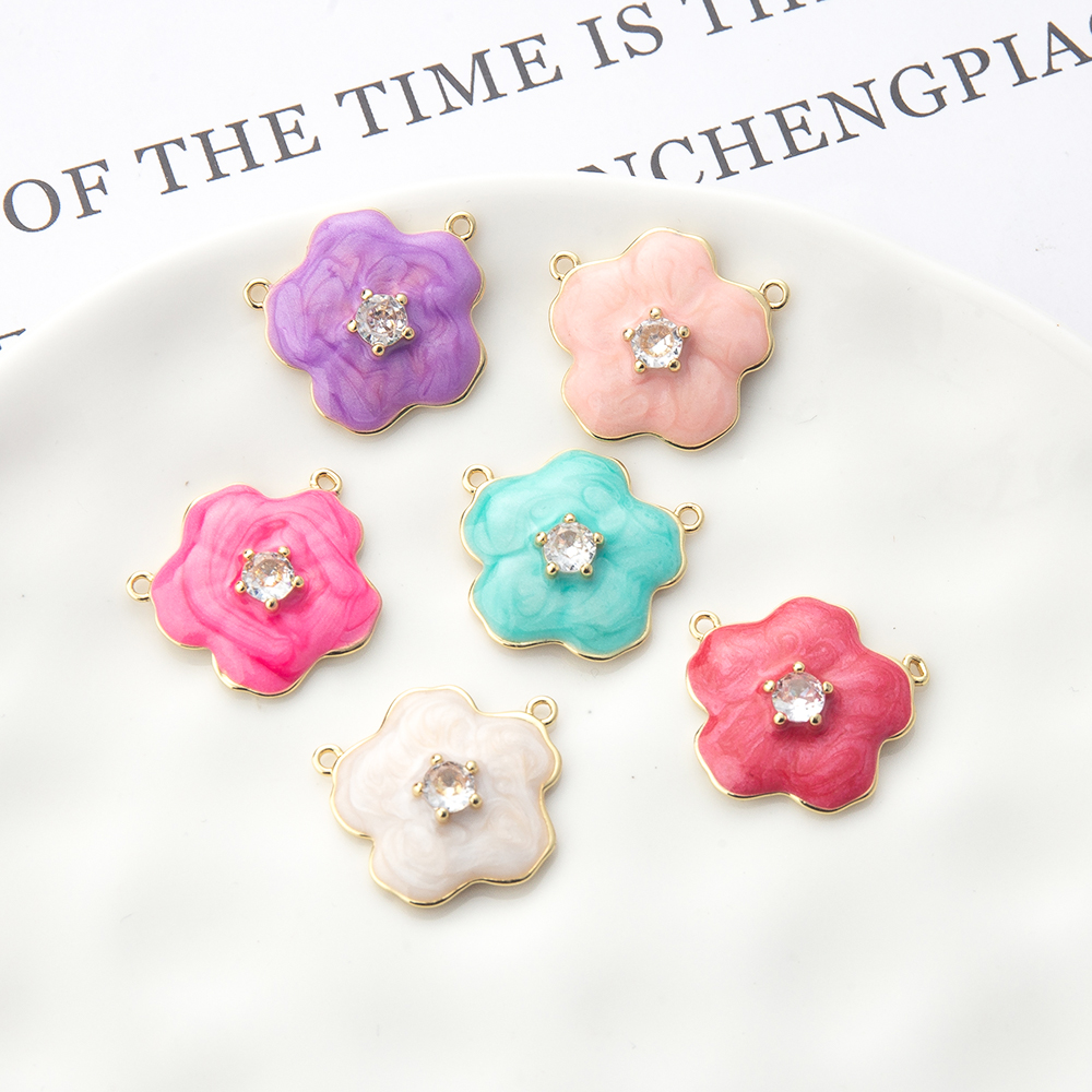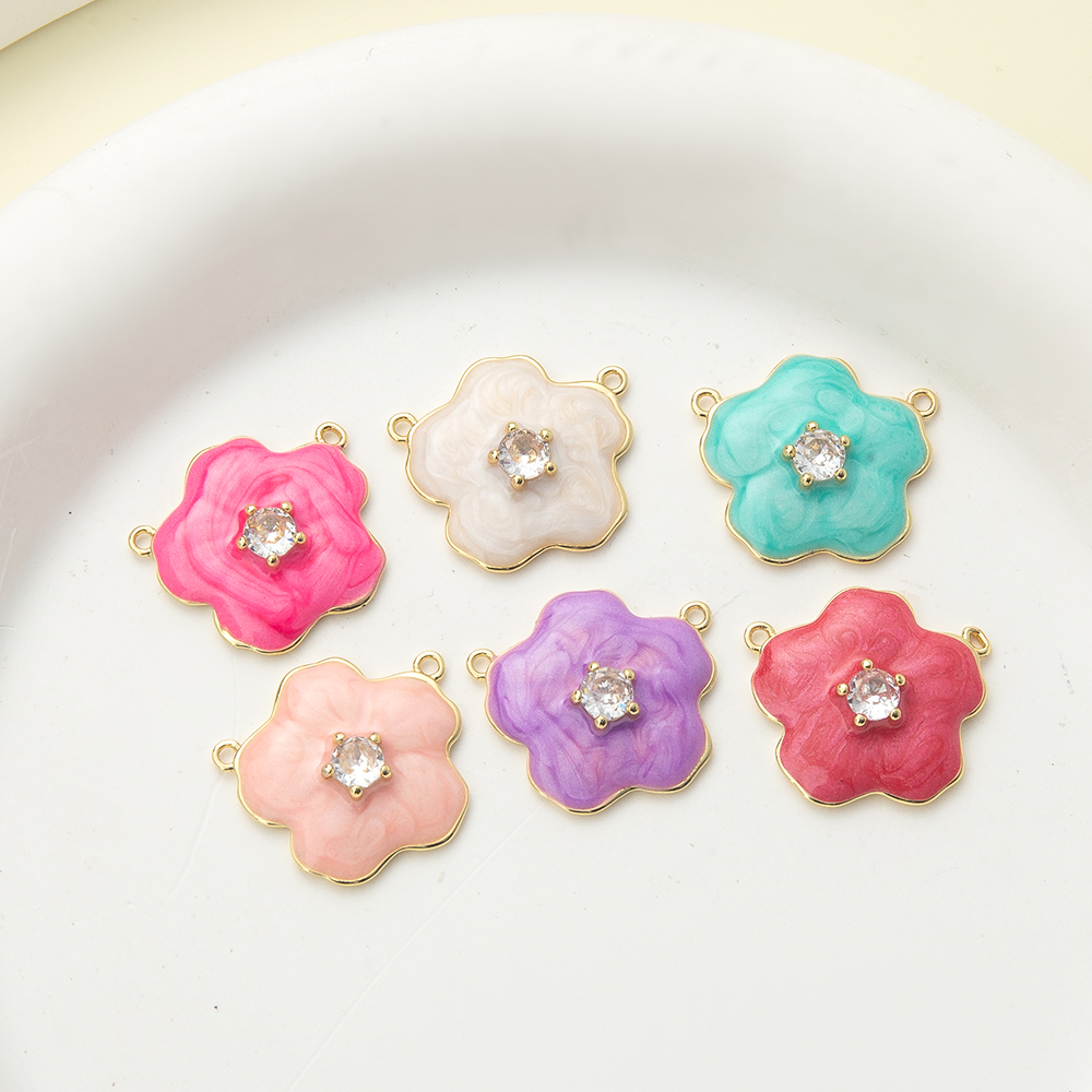 Conector de Micro Pavé de Zirconía Cúbica en Latón, metal, Flor, chapado, Bricolaje & micro arcilla de zirconia cúbica & esmalte & 1/1 aro, más colores para la opción, 21x5x19mm, Vendido por UD