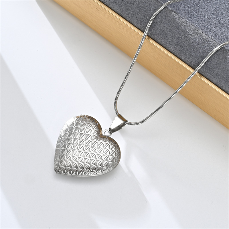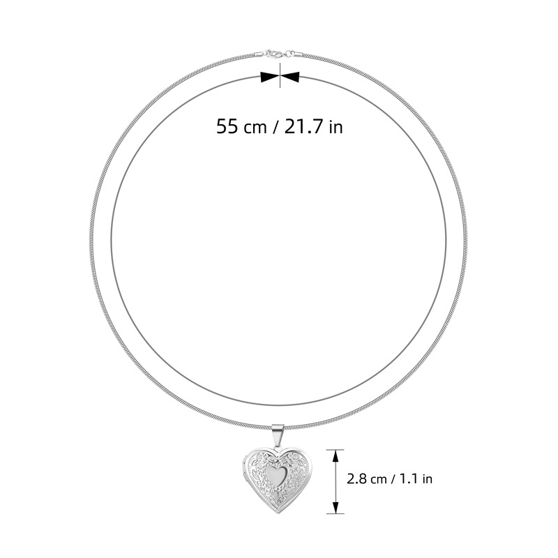 metal Collar medallón, Corazón, chapado en platina real, puede abrir y poner en algo & cadena de la serpiente & para mujer, 40x48mm, longitud:aproximado 17.5 Inch, Vendido por Sarta