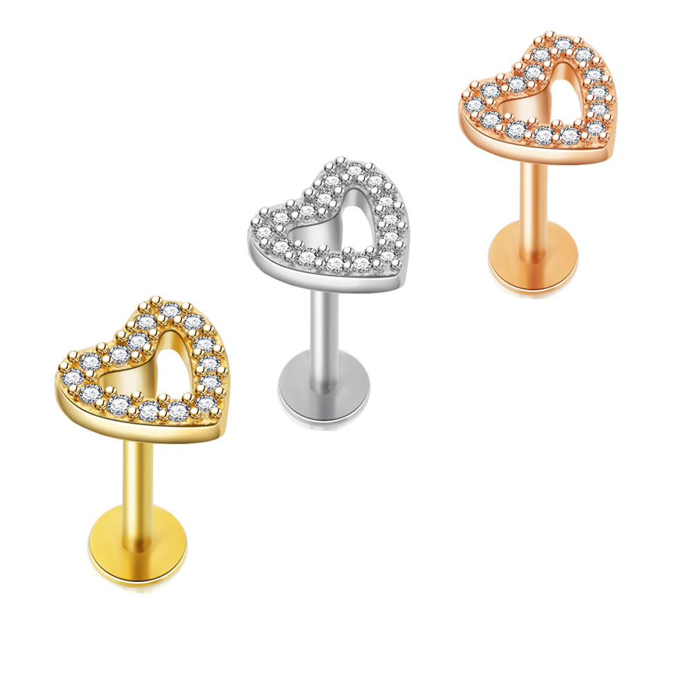 acero inoxidable 304 Piercing Piercing Joyería, Corazón, chapado, unisexo & diferentes estilos para la opción & micro arcilla de zirconia cúbica, 1.2x6mm, Vendido por UD