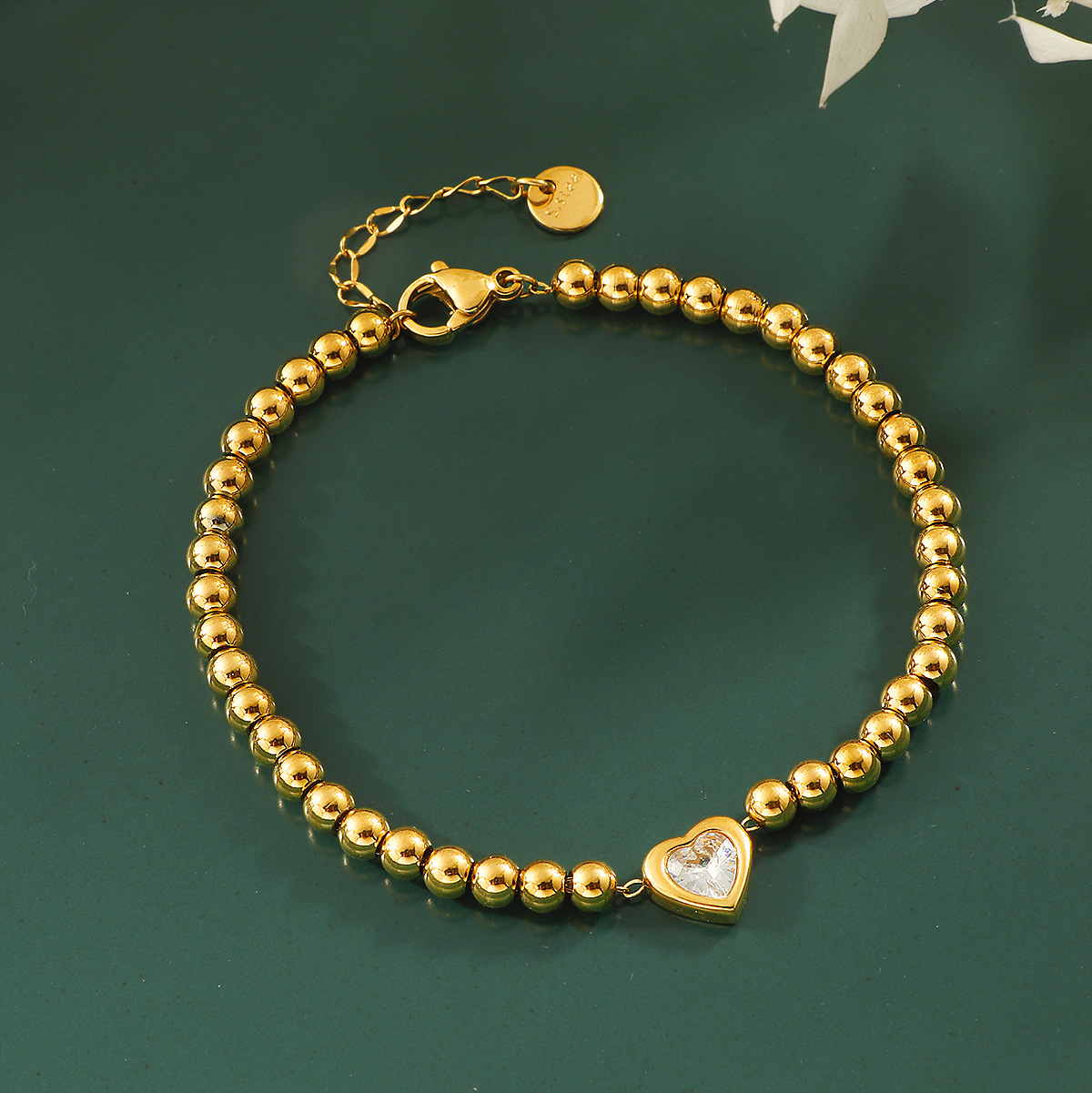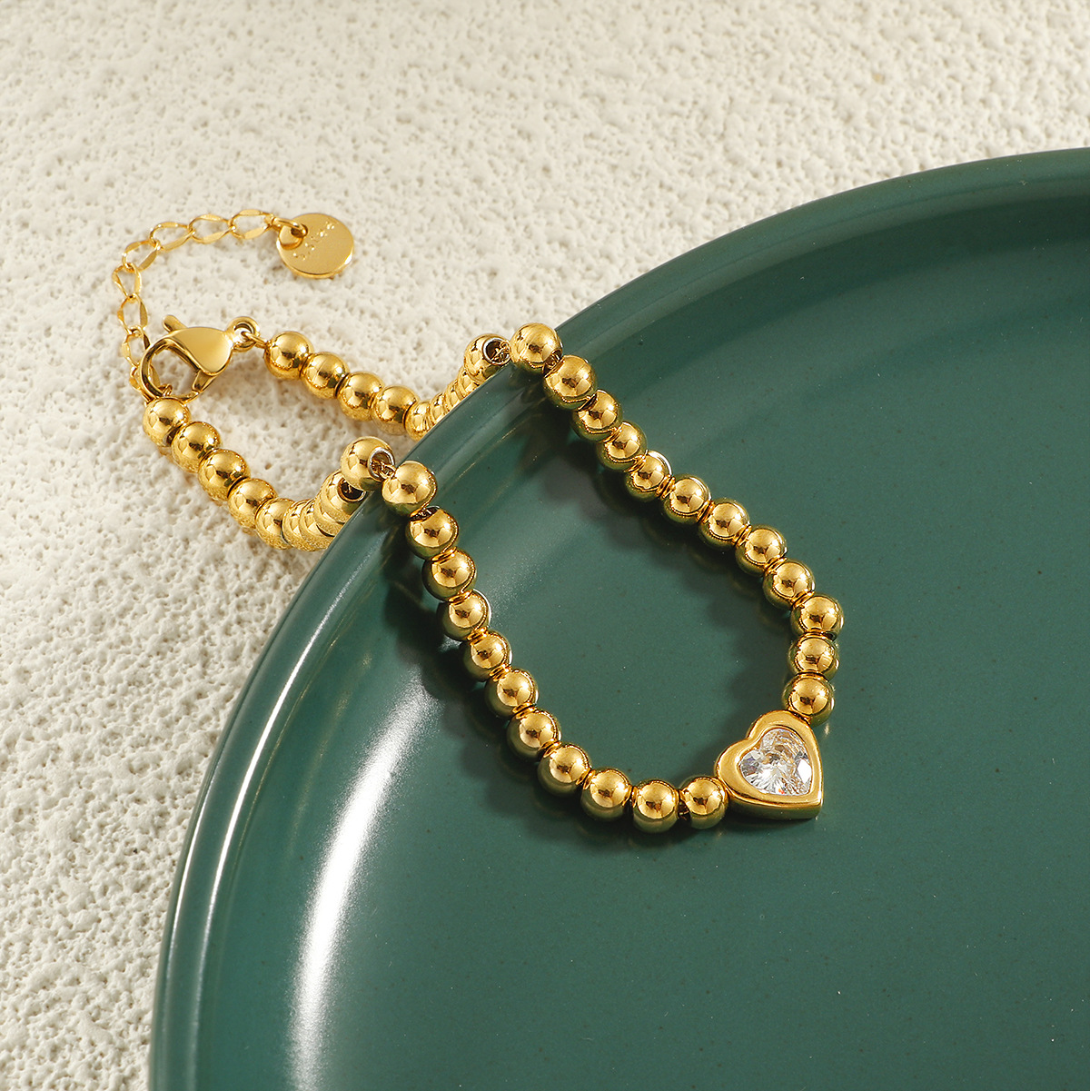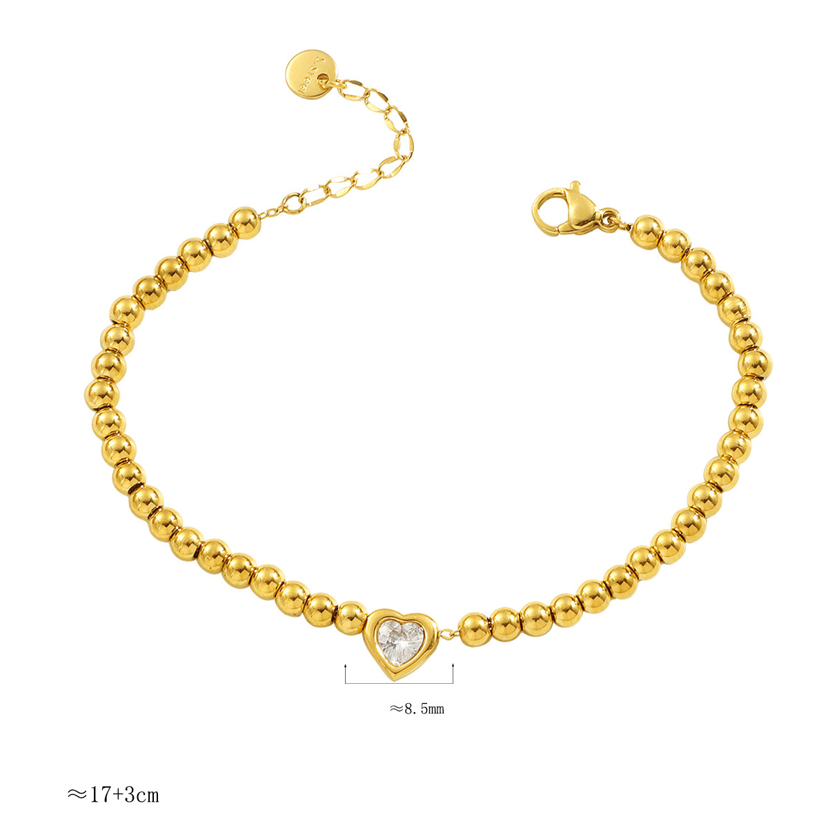 acero inoxidable 304 Pulsera, con 3cm extender cadena, Corazón, chapado en color dorado, micro arcilla de zirconia cúbica & para mujer, longitud:aproximado 17 cm, Vendido por UD