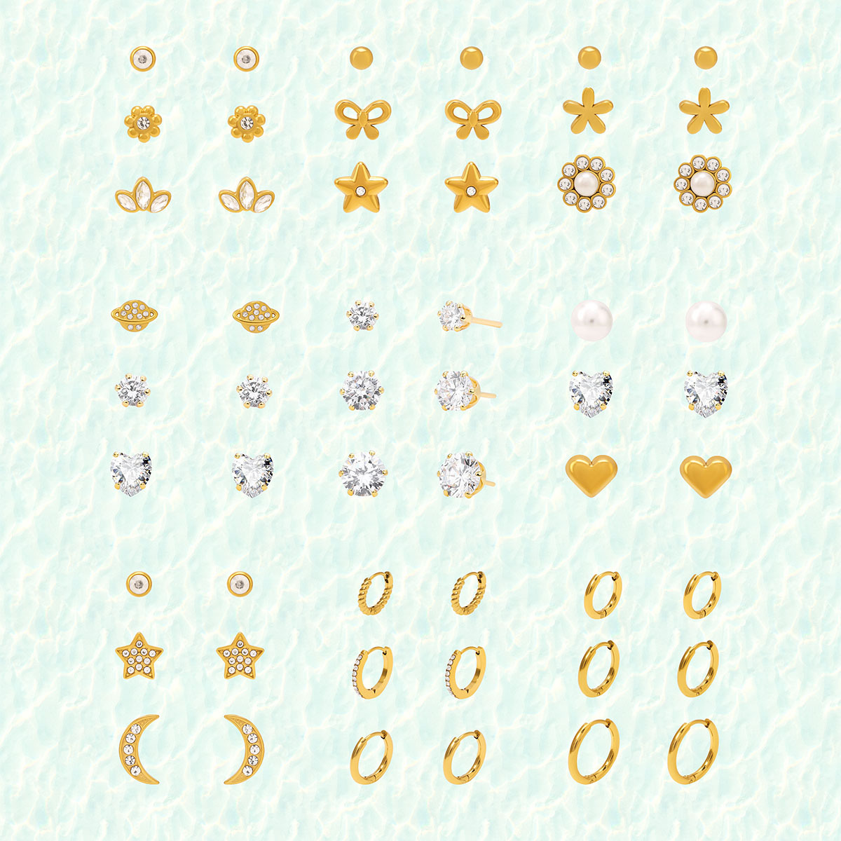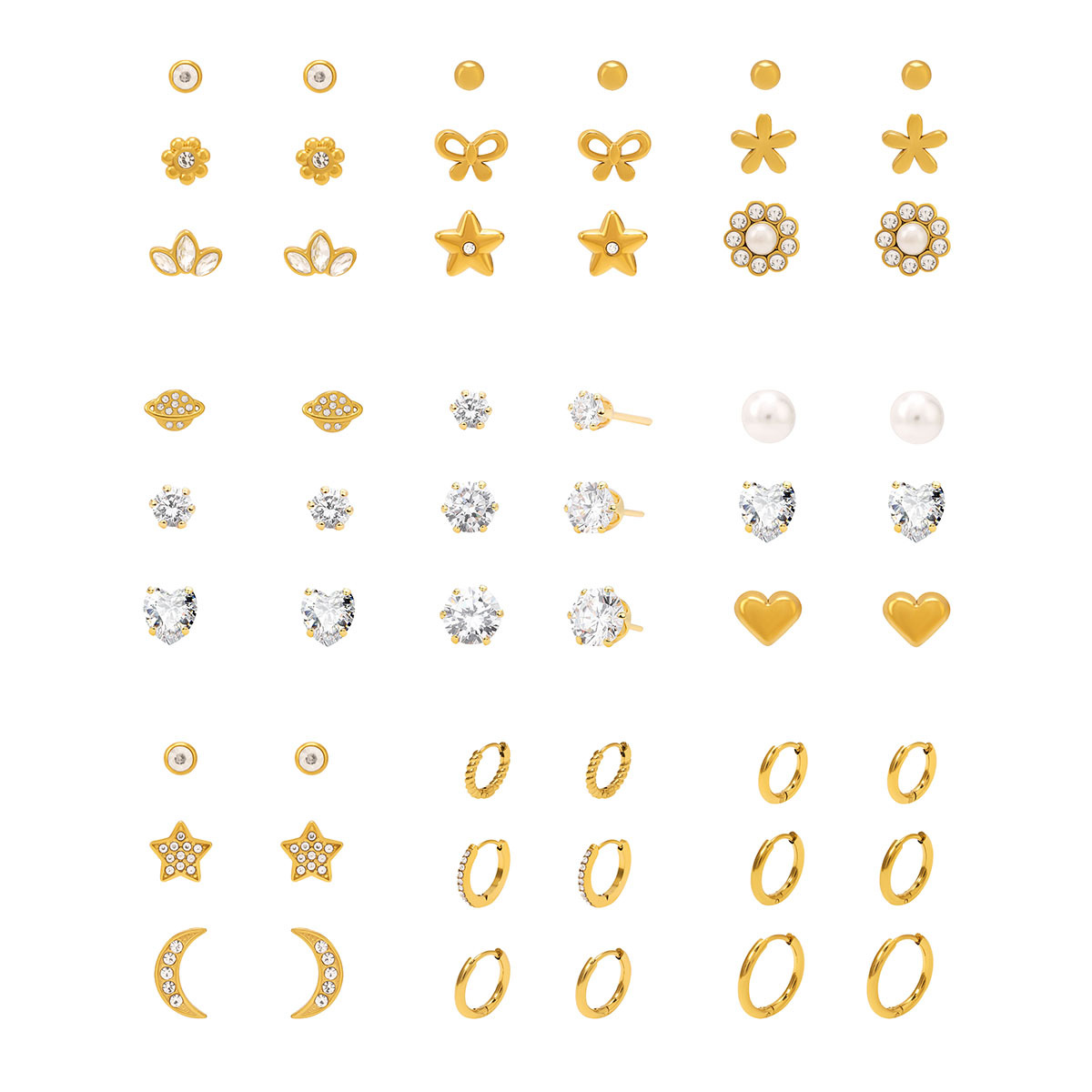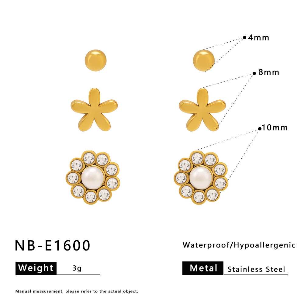 acero inoxidable 304 Stud aretes, con Perlas plásticas, 18K chapado en oro, tres piezas & diferentes estilos para la opción & micro arcilla de zirconia cúbica & para mujer, Vendido por Set