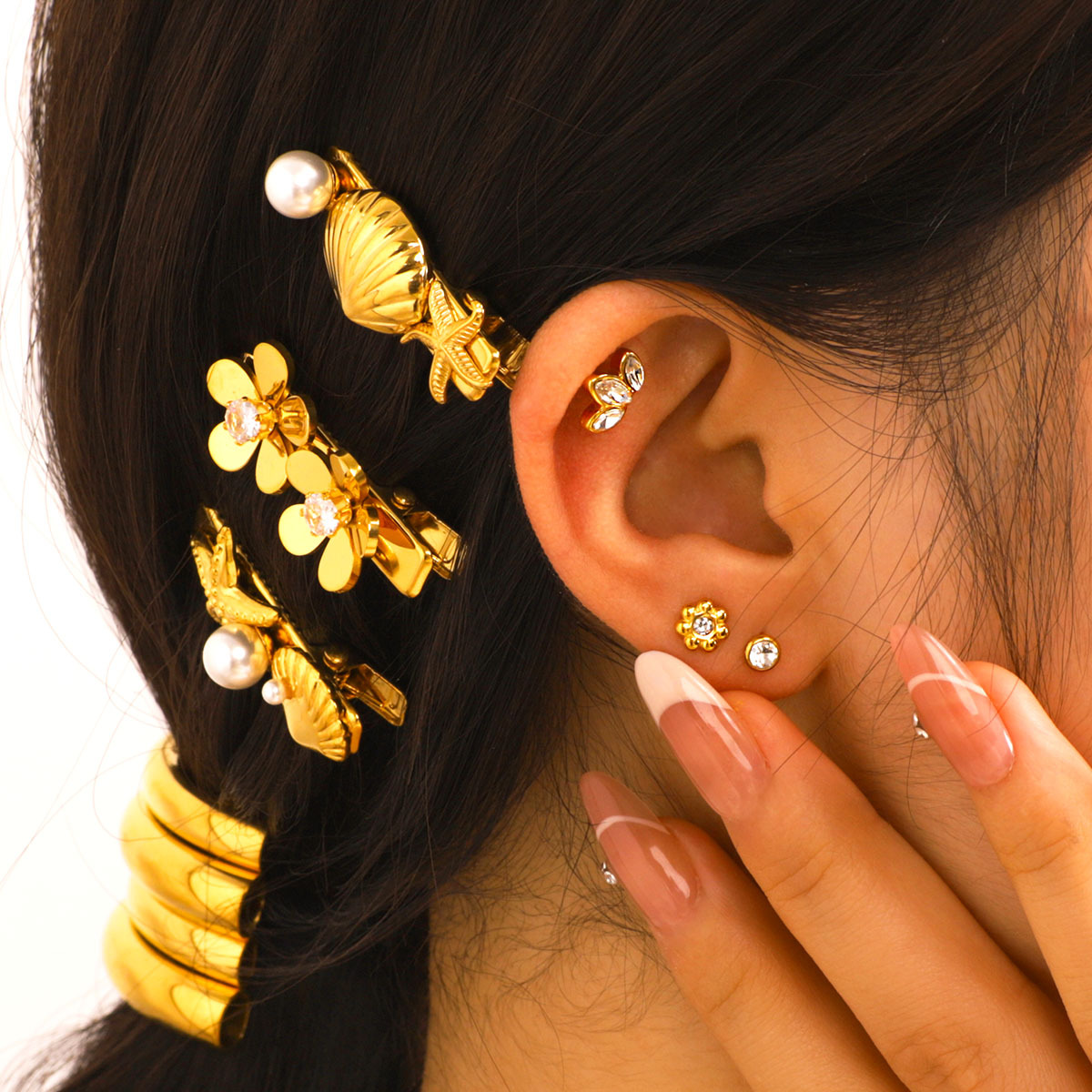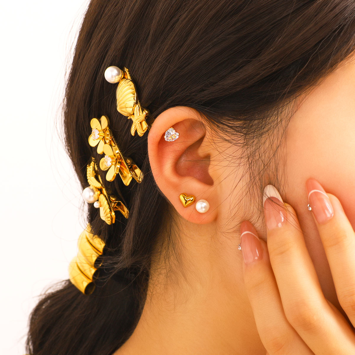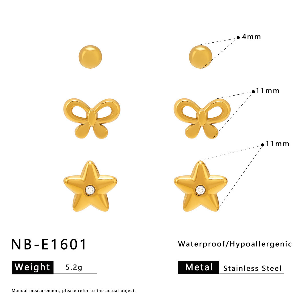 acero inoxidable 304 Stud aretes, con Perlas plásticas, 18K chapado en oro, tres piezas & diferentes estilos para la opción & micro arcilla de zirconia cúbica & para mujer, Vendido por Set