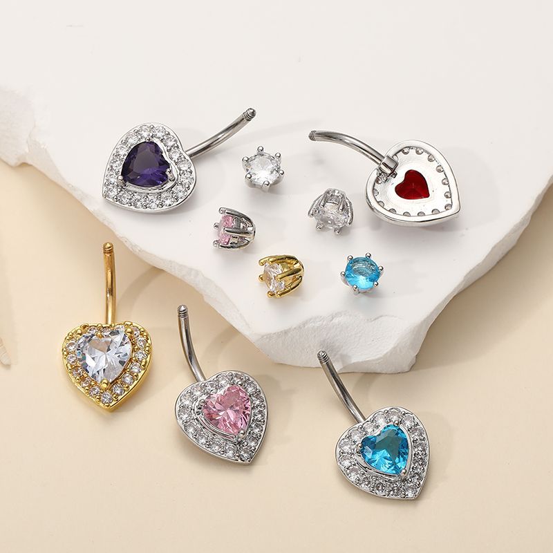 acero inoxidable 304 anillo de vientre, Corazón, unisexo & micro arcilla de zirconia cúbica, más colores para la opción, belly ring rod size 1.6x10mm, Vendido por UD