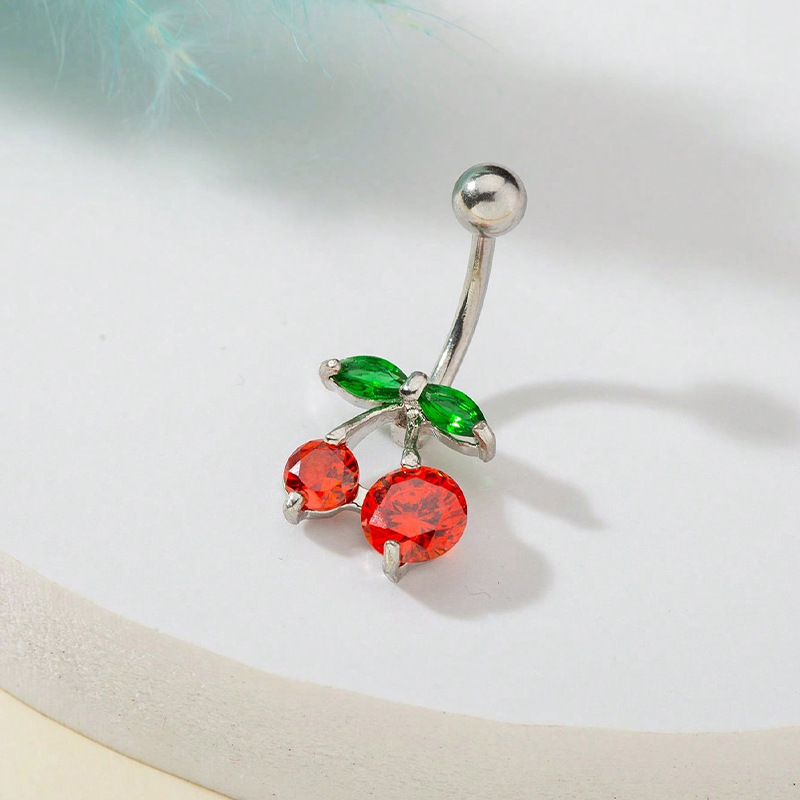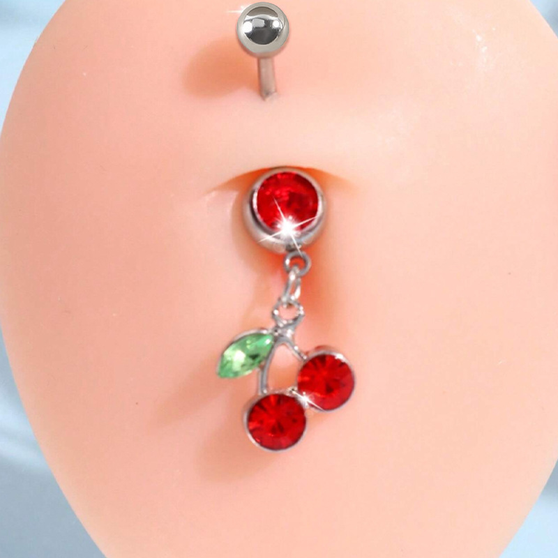 acero inoxidable 304 anillo de vientre, con Plástico, Cereza, chapado, unisexo & diferentes estilos para la opción & con diamantes de imitación, belly ring length 27-40mm, Vendido por UD