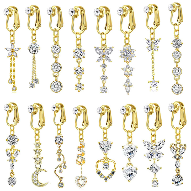 acero inoxidable 304 anillo de vientre, chapado en color dorado, unisexo & diferentes estilos para la opción & con diamantes de imitación, belly ring length 45-60mm, Vendido por UD