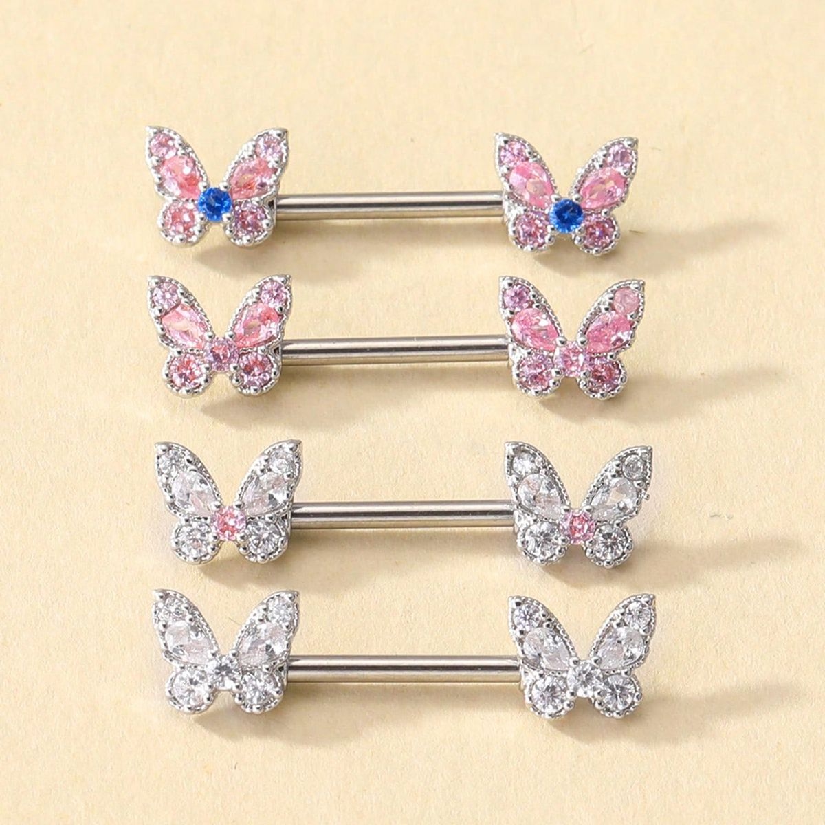 acero inoxidable 304 anillo para pezón, Mariposa, unisexo & micro arcilla de zirconia cúbica, más colores para la opción, 14mm, Vendido por UD