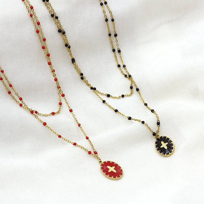 acero inoxidable 304 collar, chapado en color dorado, Doble capa & Joyería & esmalte, más colores para la opción, Vendido por UD