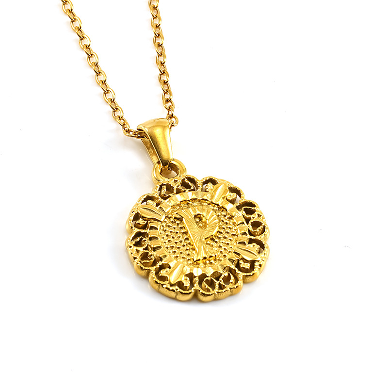 acero inoxidable collar, con 5cm extender cadena, Letra, chapado en color dorado, 35x9mm, longitud:aproximado 20 Inch, Vendido por Sarta