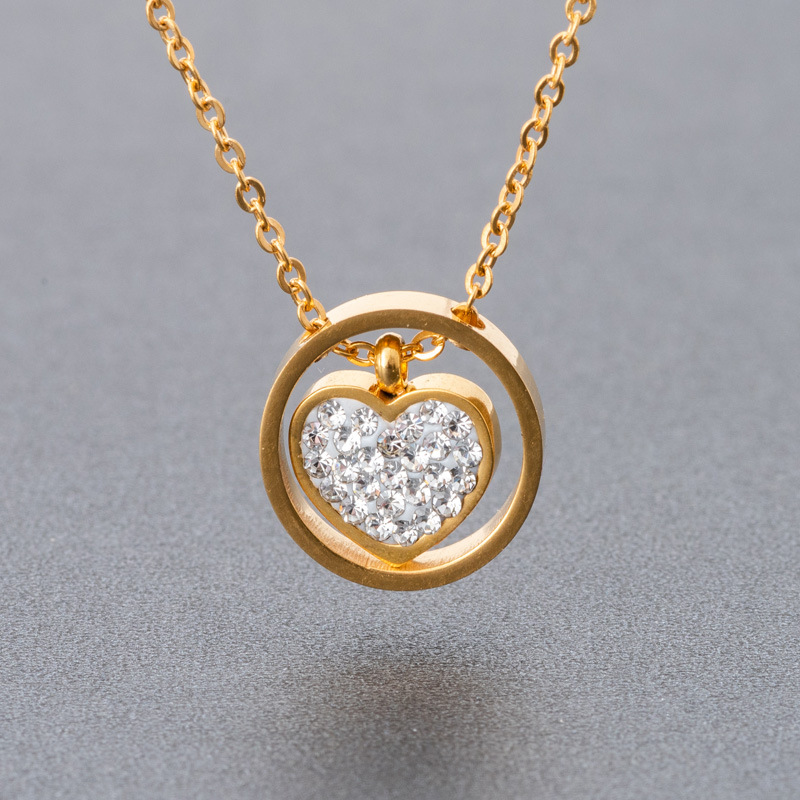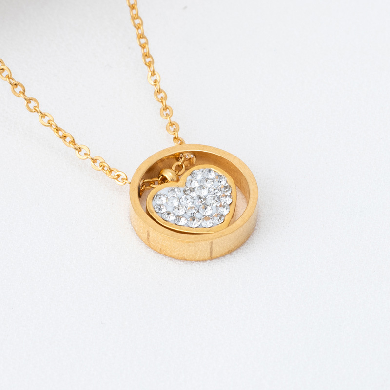 acero inoxidable 304 collar, Corazón, chapado, cadena oval & para mujer & con diamantes de imitación, más colores para la opción, longitud:aproximado 16-20 Inch, Vendido por UD