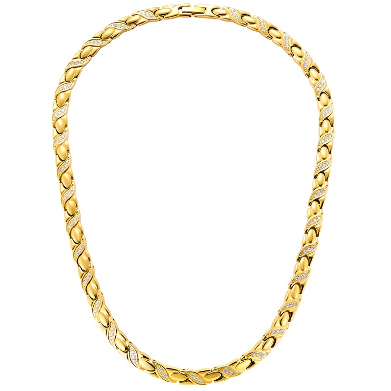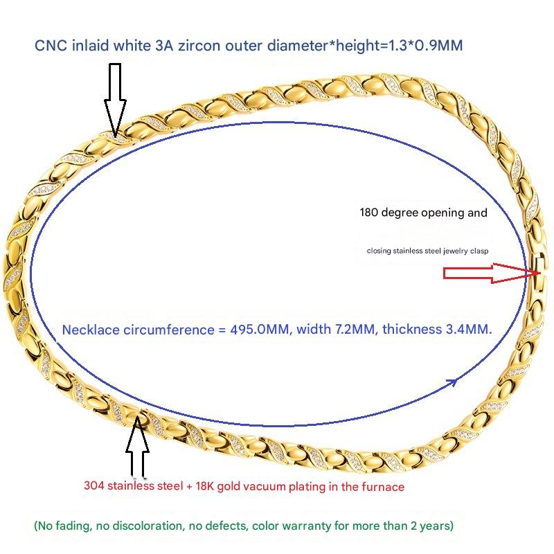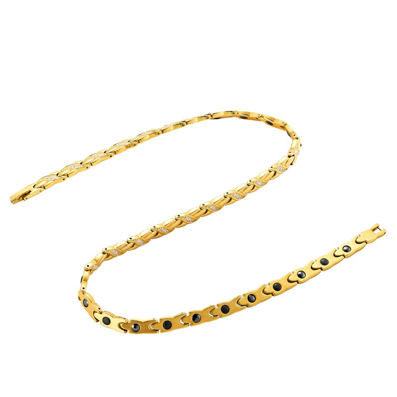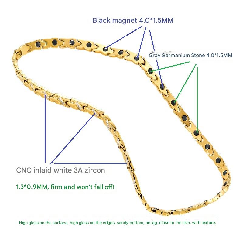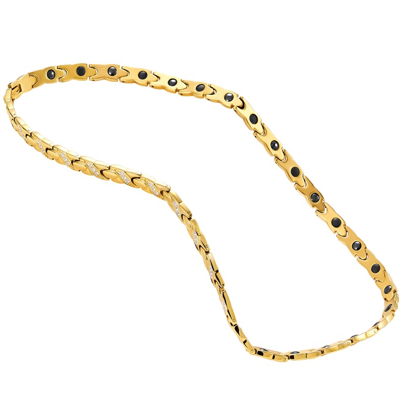 acero inoxidable 304 collar, con Negro+Magnético+Piedra, Recubrimiento iónico al vacío, micro arcilla de zirconia cúbica & para mujer, dorado, longitud:aproximado 19.5 Inch, Vendido por UD