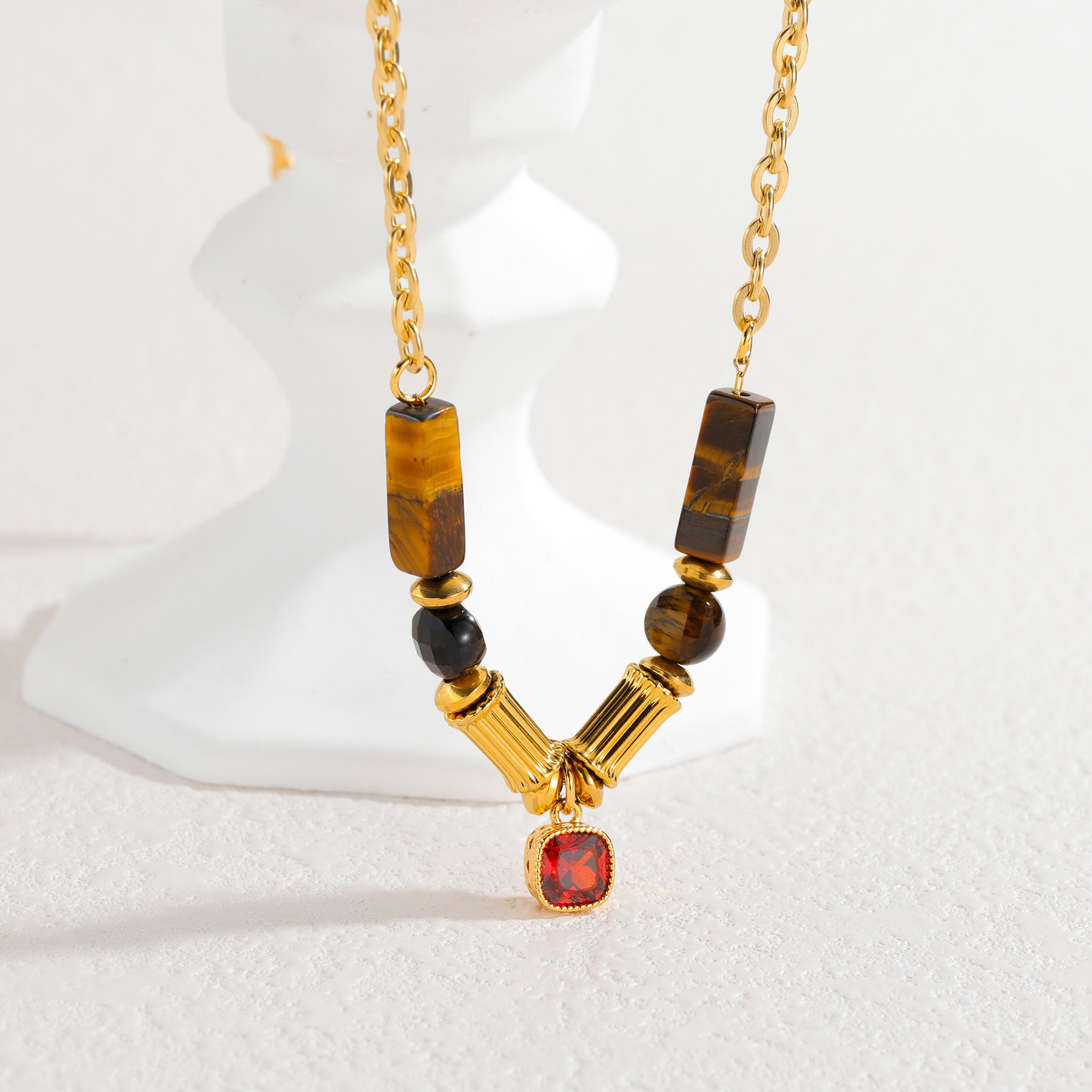 acero inoxidable 304 collar, con turquesa & Cuero de PU & Ojo de tigre, chapado, diferentes estilos para la opción & para mujer, Vendido por UD