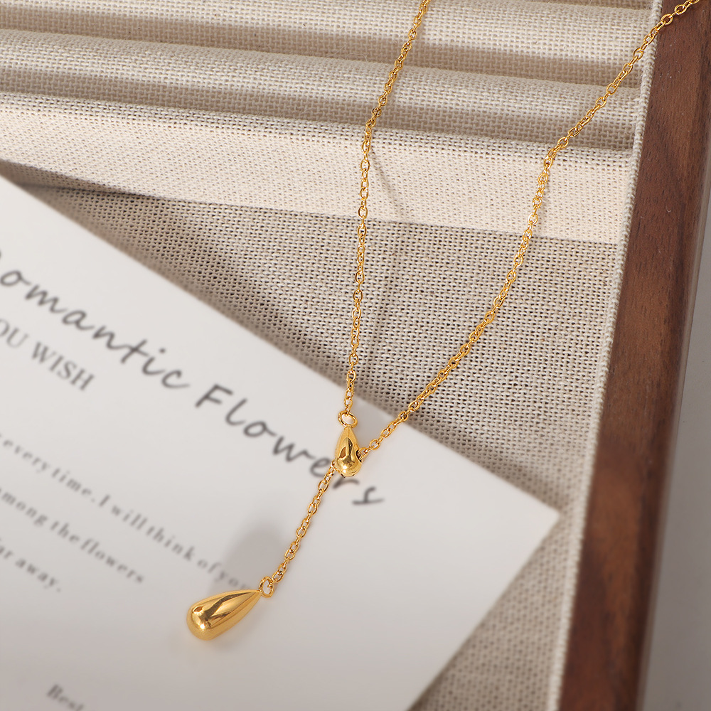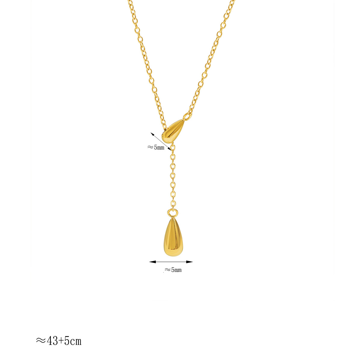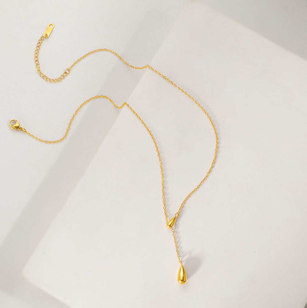 acero inoxidable 304 collar, con 5cm extender cadena, Gota, chapado en color dorado, cadena oval & para mujer, longitud:aproximado 43 cm, Vendido por UD
