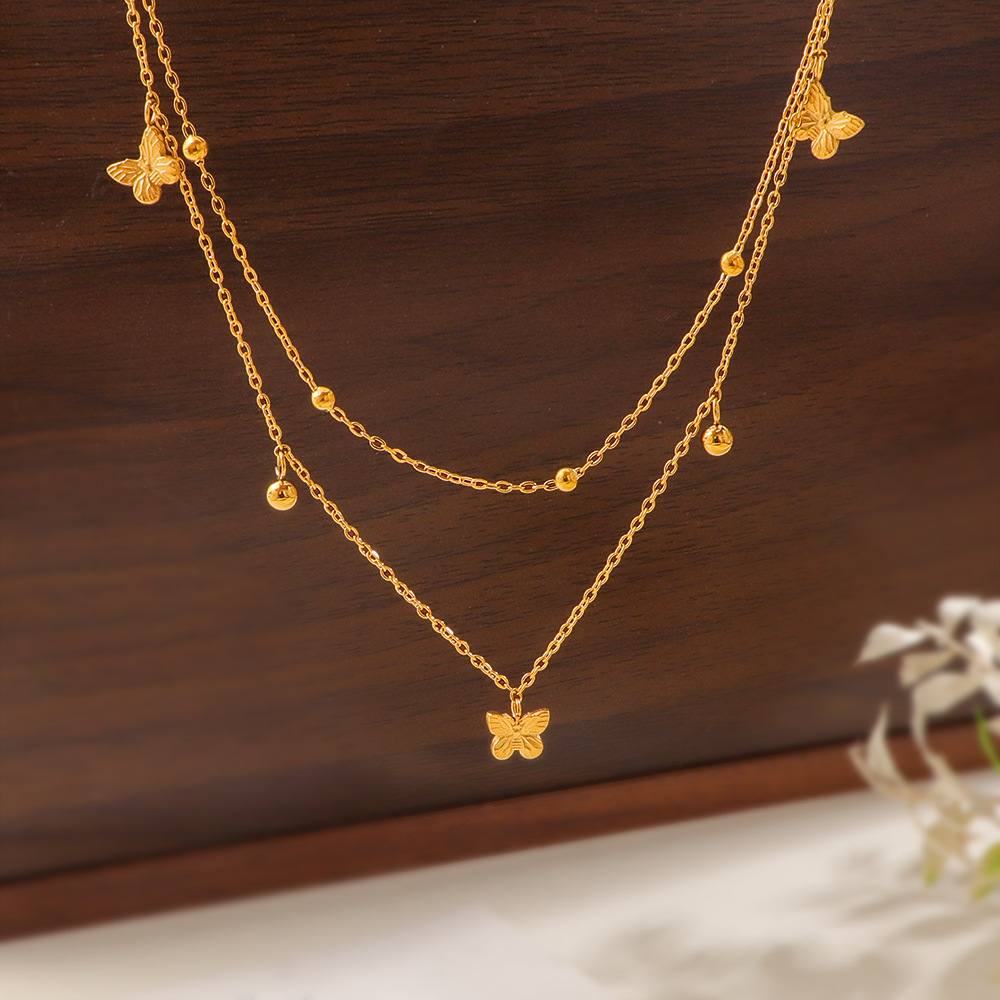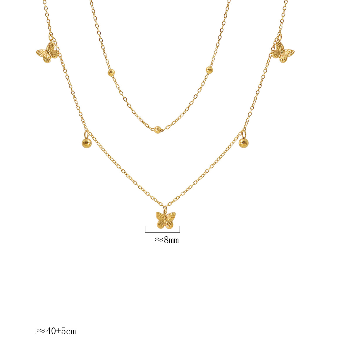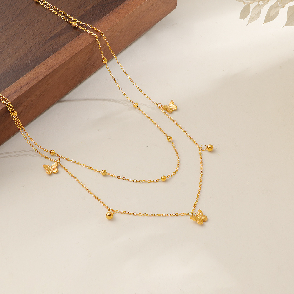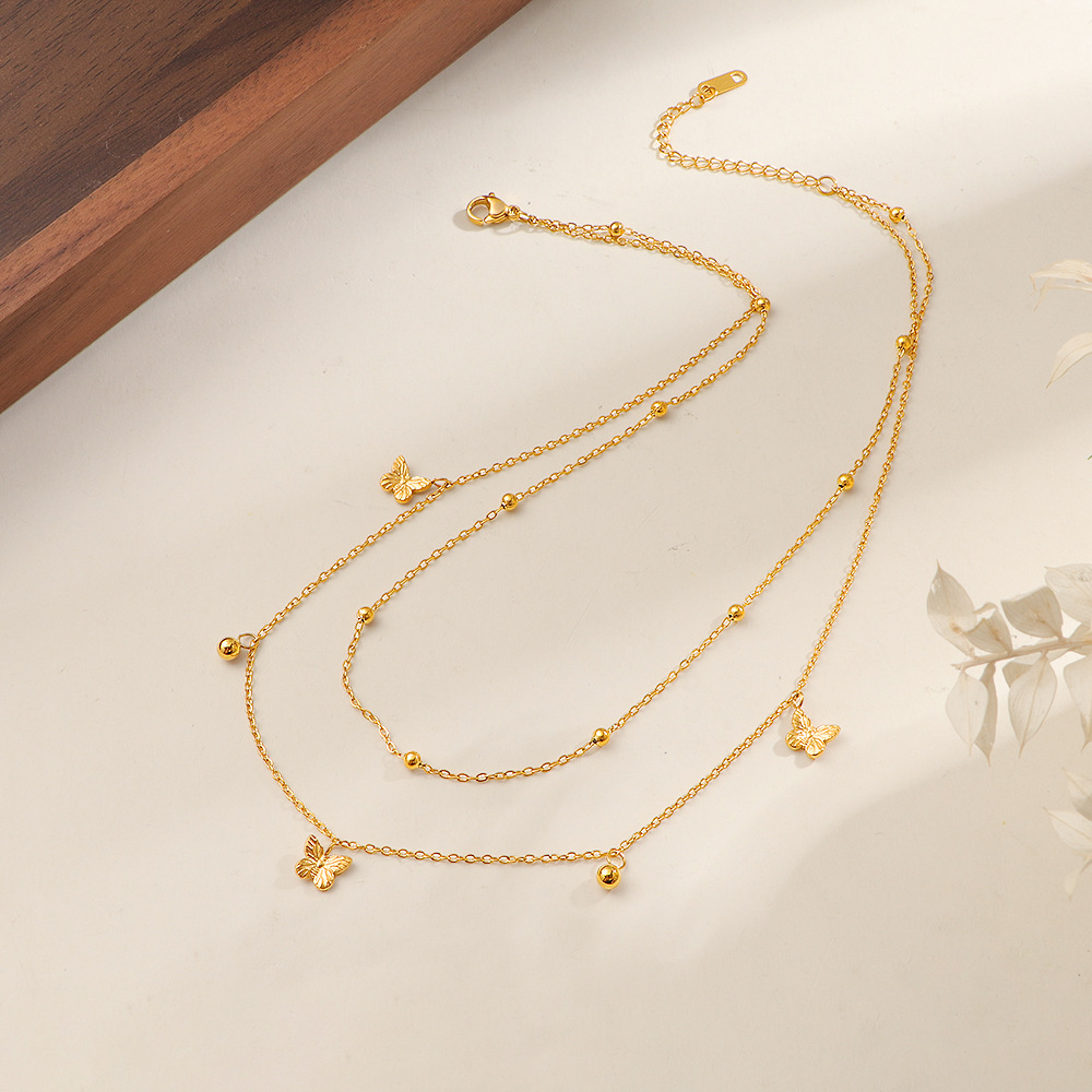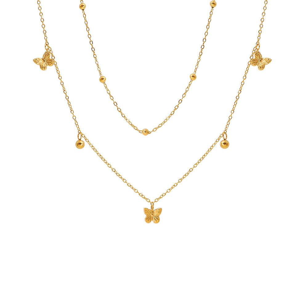acero inoxidable 304 collar, con 5cm extender cadena, Mariposa, chapado en color dorado, Doble capa & Joyería & para mujer, longitud:aproximado 40 cm, Vendido por UD