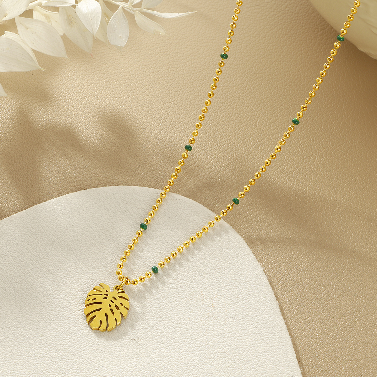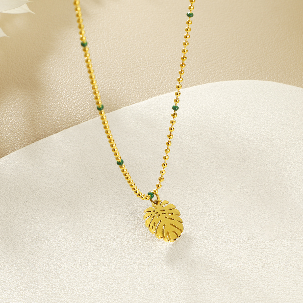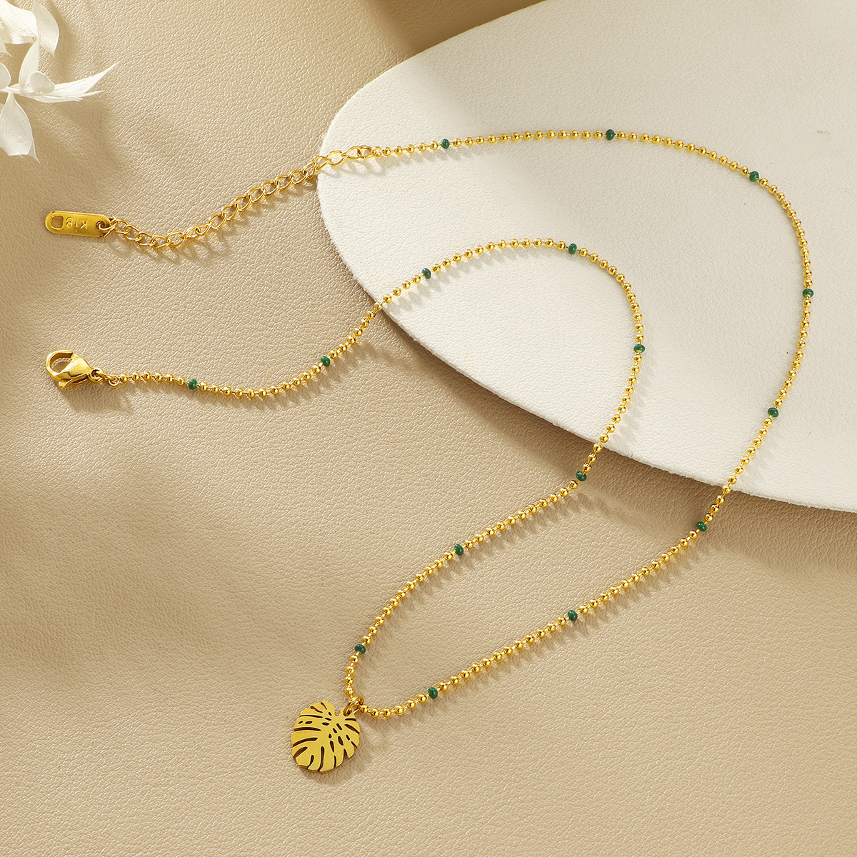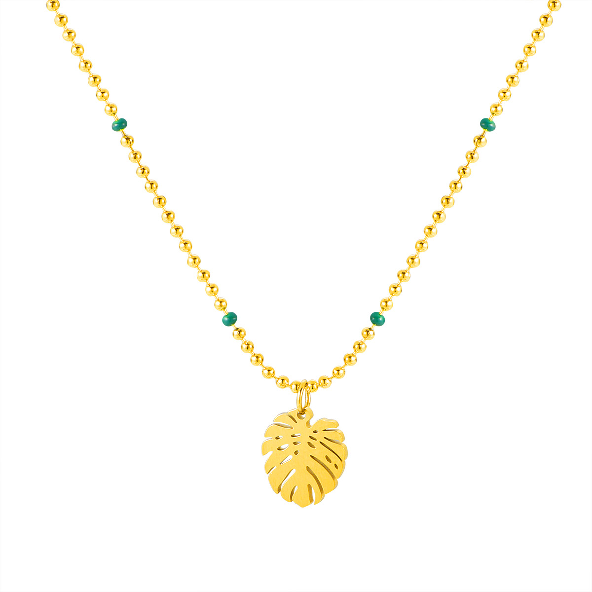 acero inoxidable 304 collar, con 5cm extender cadena, Hoja, chapado en color dorado, Joyería & cadena de la bola & para mujer, longitud:aproximado 40 cm, Vendido por UD