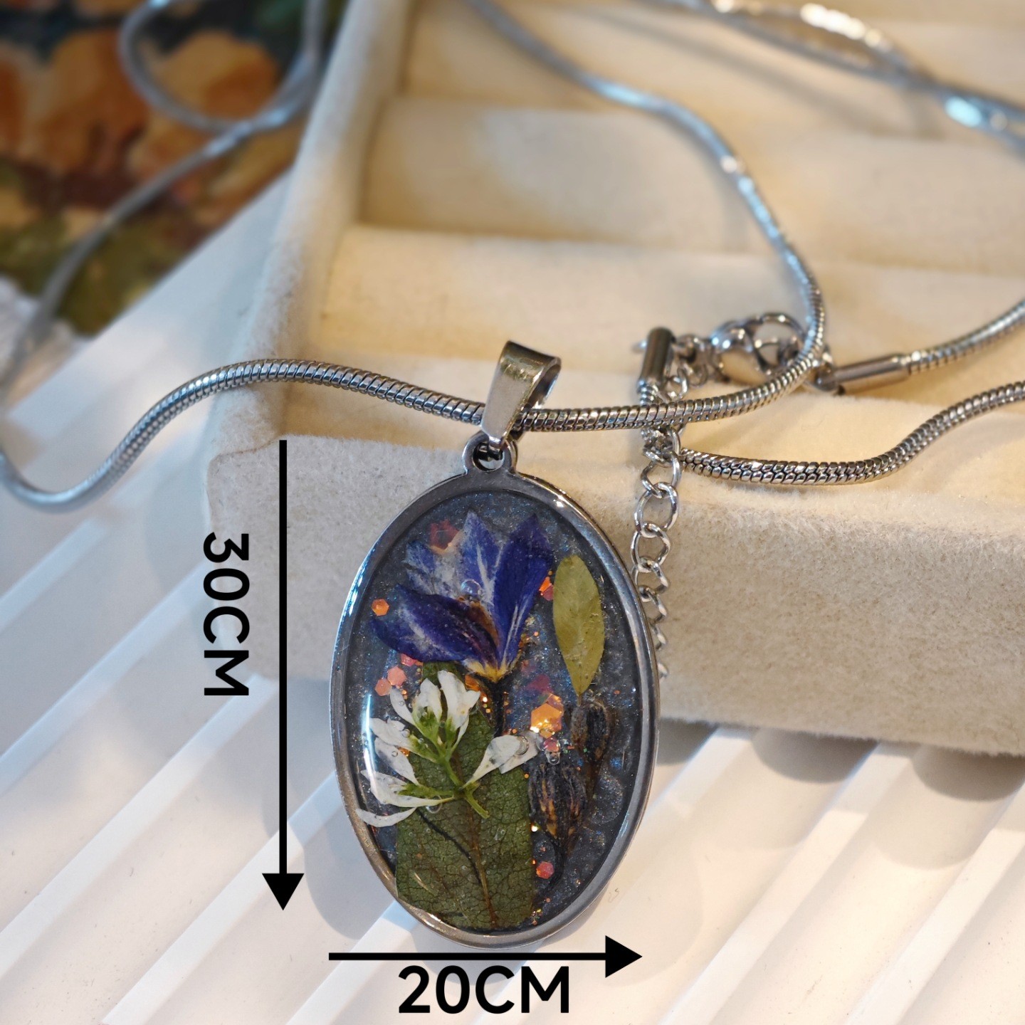 acero inoxidable collar, con Flores secas, Joyería & diferentes estilos para la opción & para mujer & pegamento de gota, Vendido por UD
