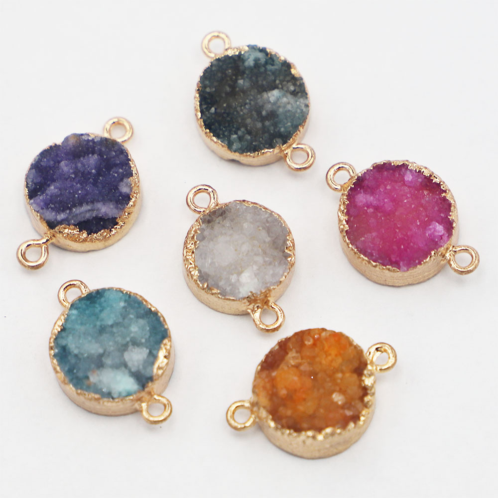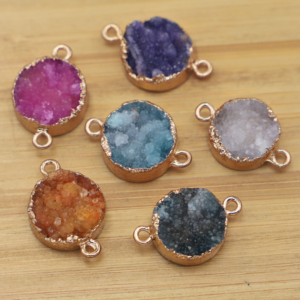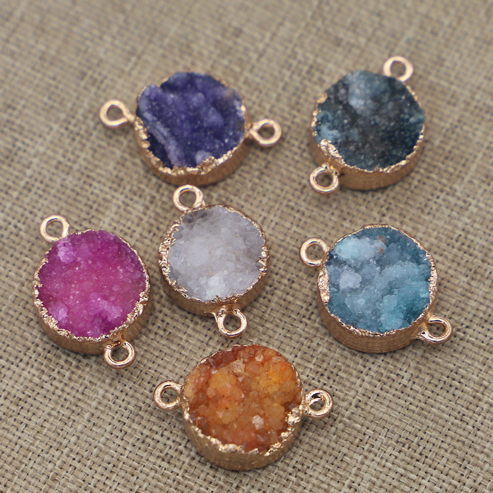 Ágata de cuarzo de hielo Conector, con metal, estilo druzy & 1/1 aro, color mixto, 15mm-20mm, agujero:aproximado 2mm, 5PCs/Bolsa, Vendido por Bolsa