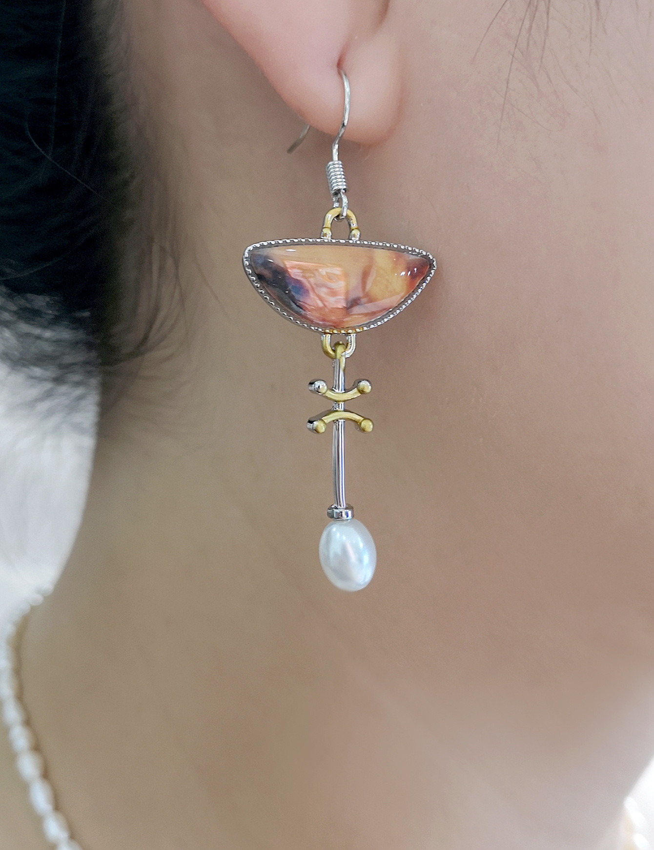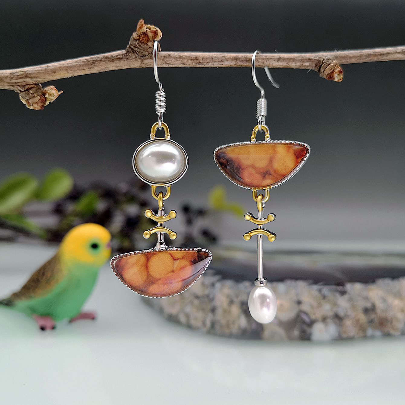 aleación de zinc Pendientes asimétricos, con Piedra preciosa sintética & Perlas plásticas, chapado, Joyería & para mujer, 22x58mm, Vendido por Par